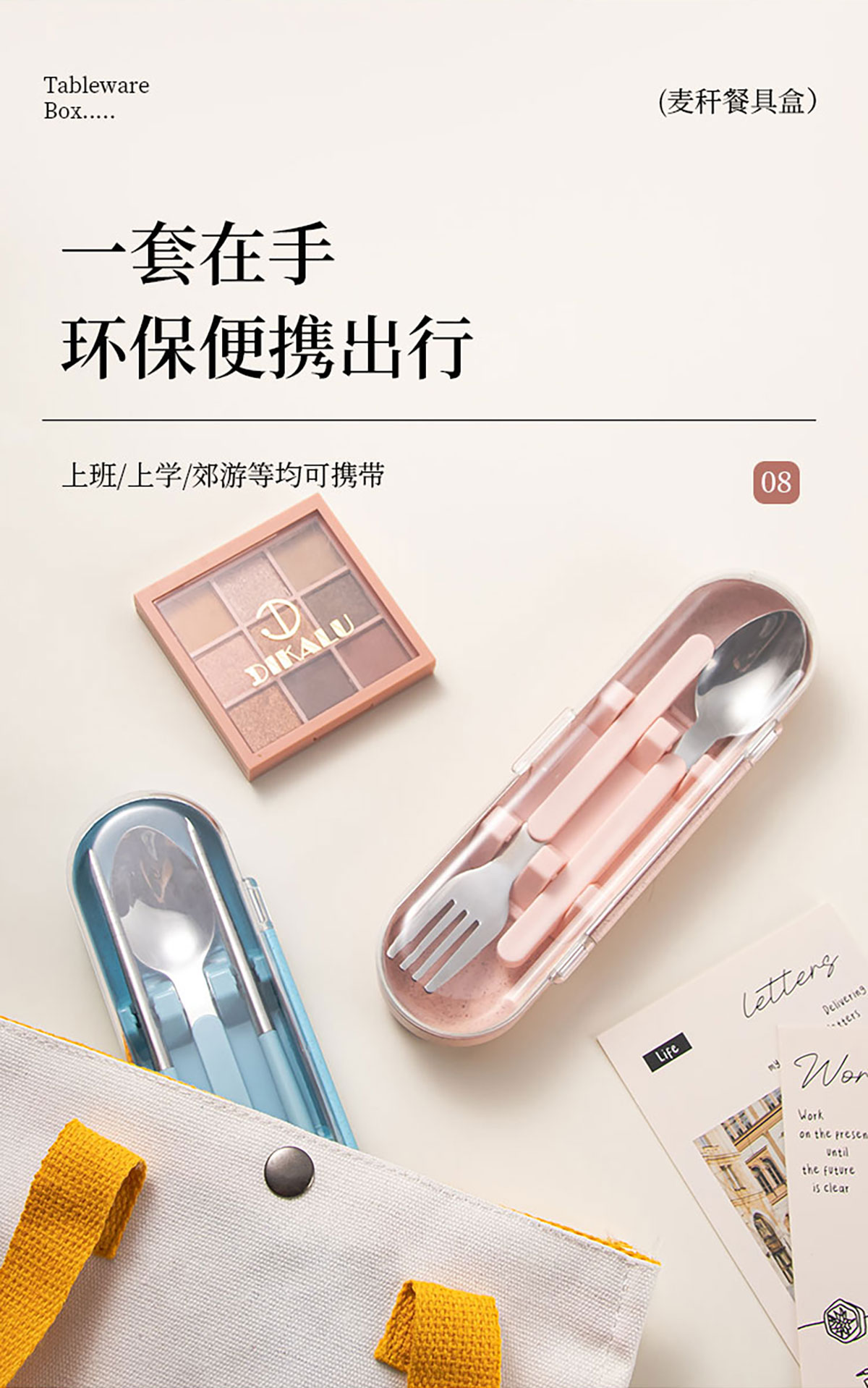 麥稈便攜不銹鋼餐具叉勺/筷勺兩件套