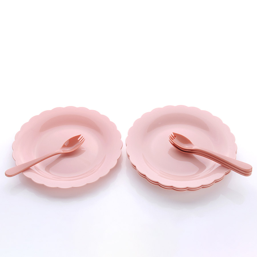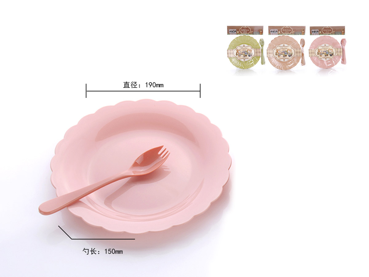 得力熊歐式中號花邊圓形餐盤(4pcs)( 配4pcs叉匙)