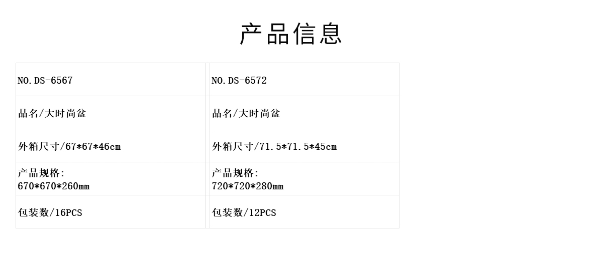 DS-6567:670*670*260mm/DS-6572:720*720*280mm