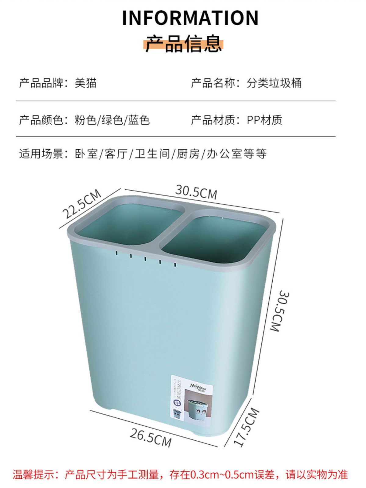 Size: 桶面:305*215mm桶底:265*175mm高:335mm