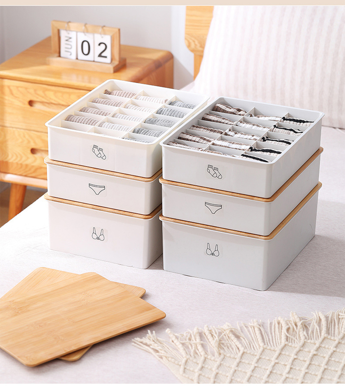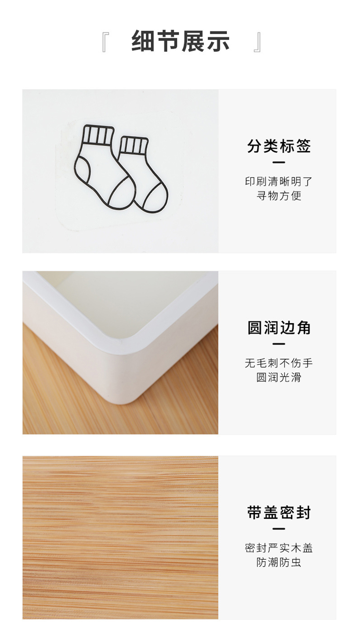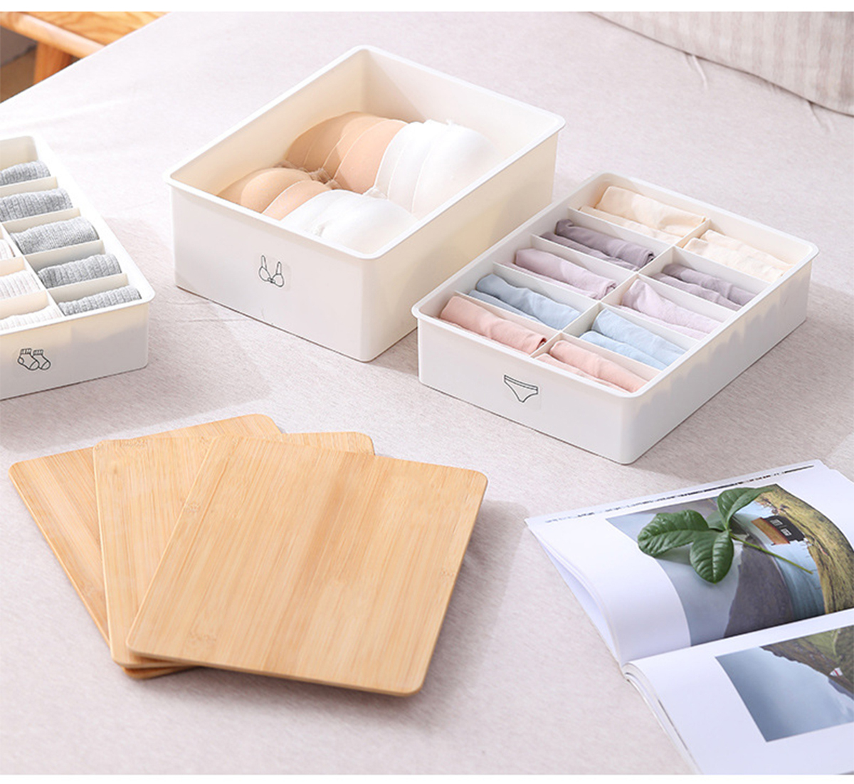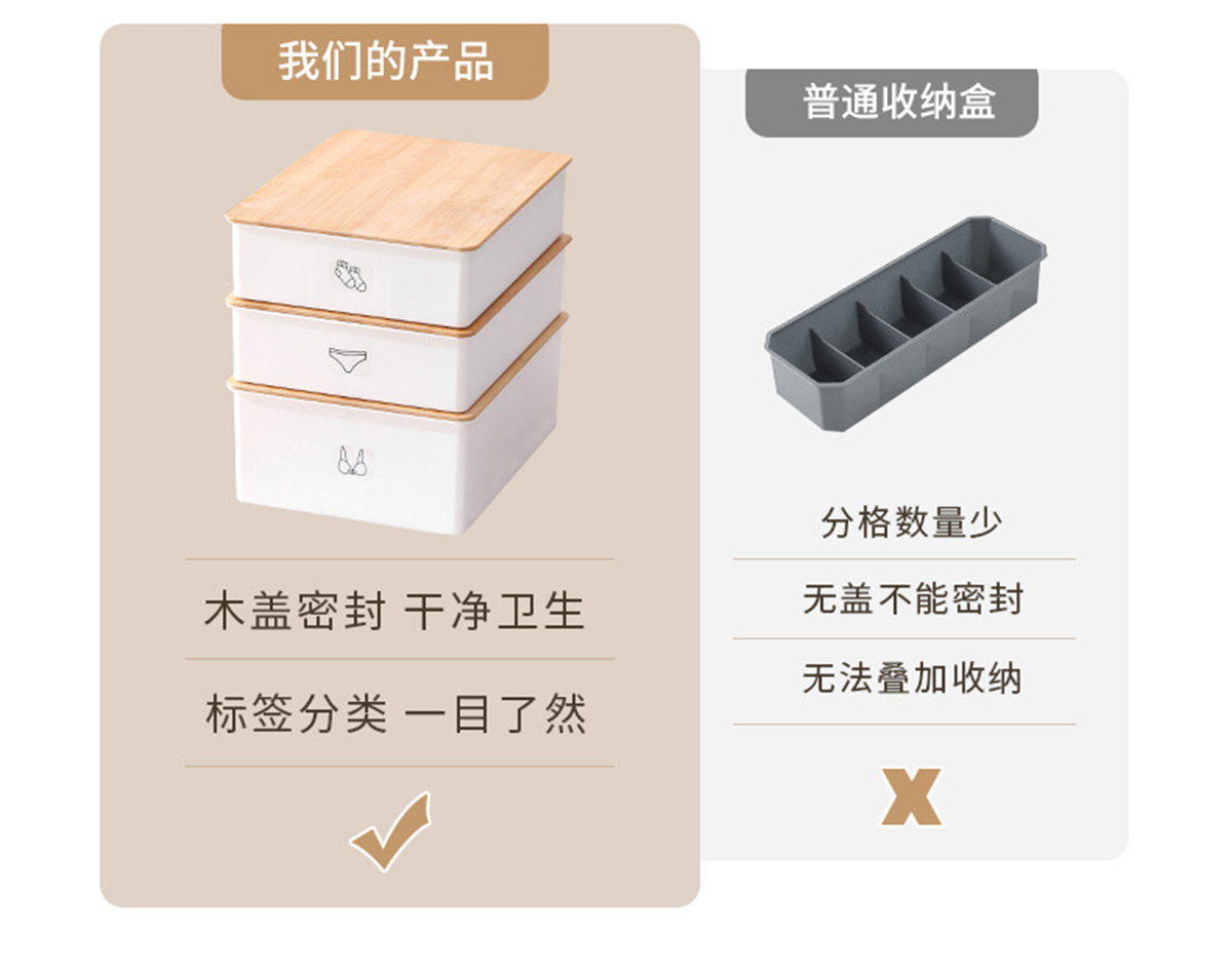 竹蓋內(nèi)褲/襪子/內(nèi)衣/三件套收納盒