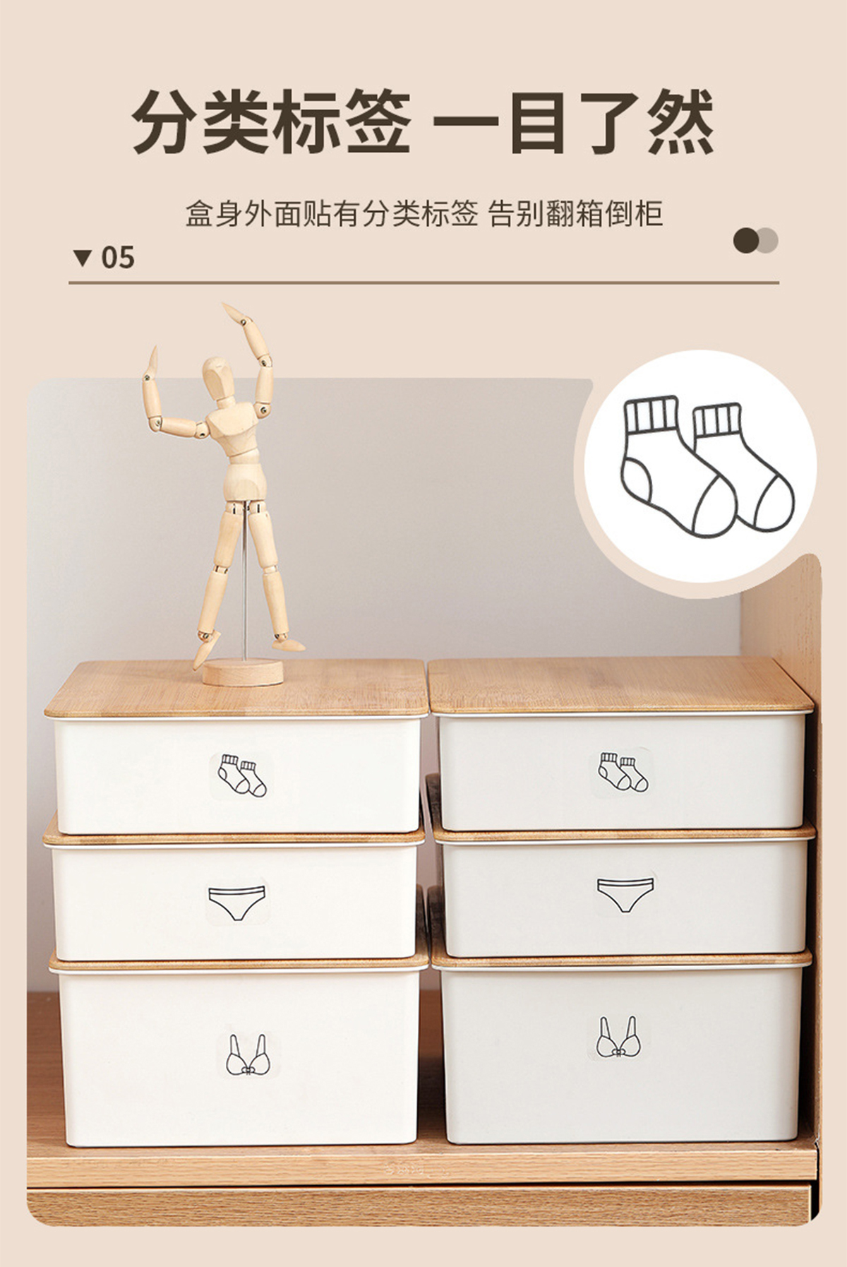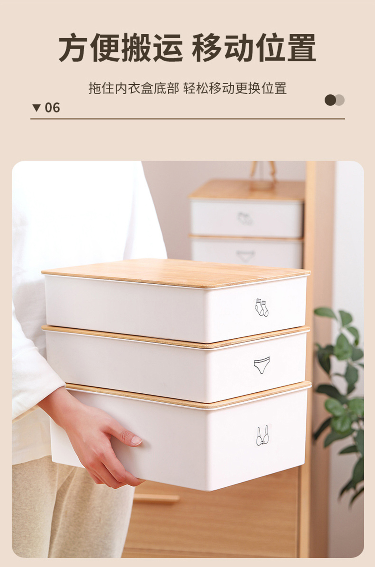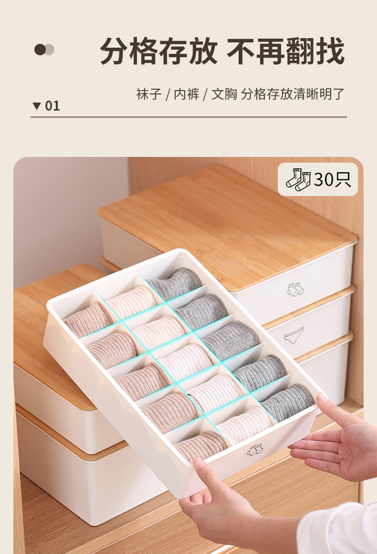 竹蓋內(nèi)褲/襪子/內(nèi)衣/三件套收納盒