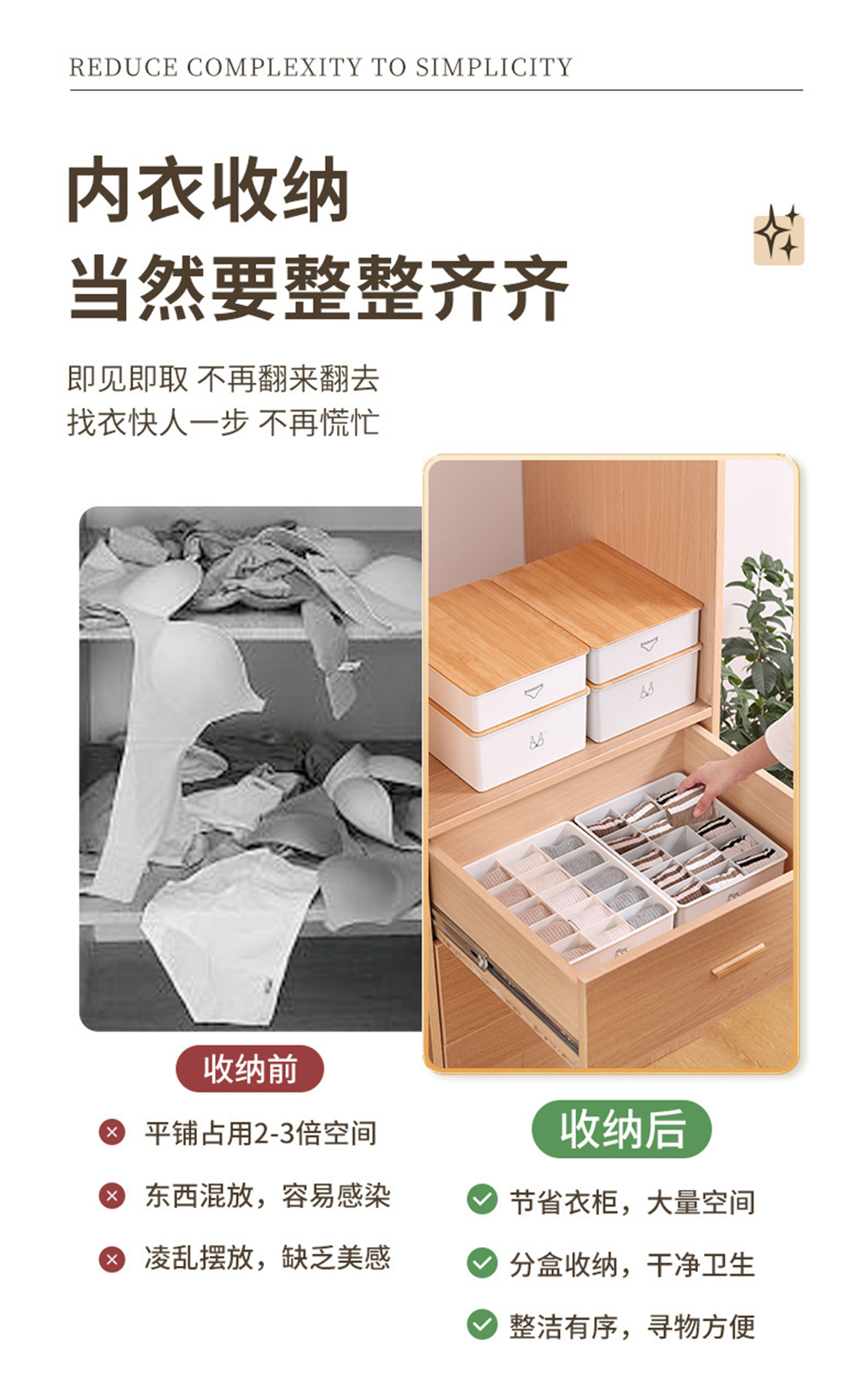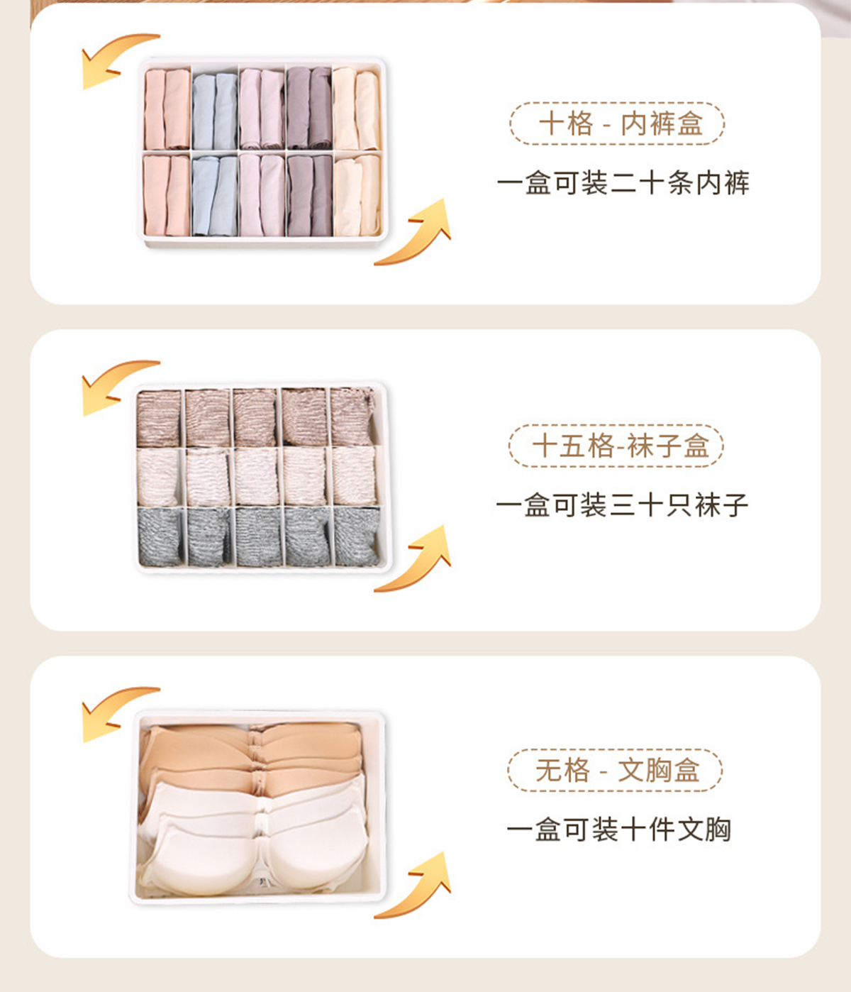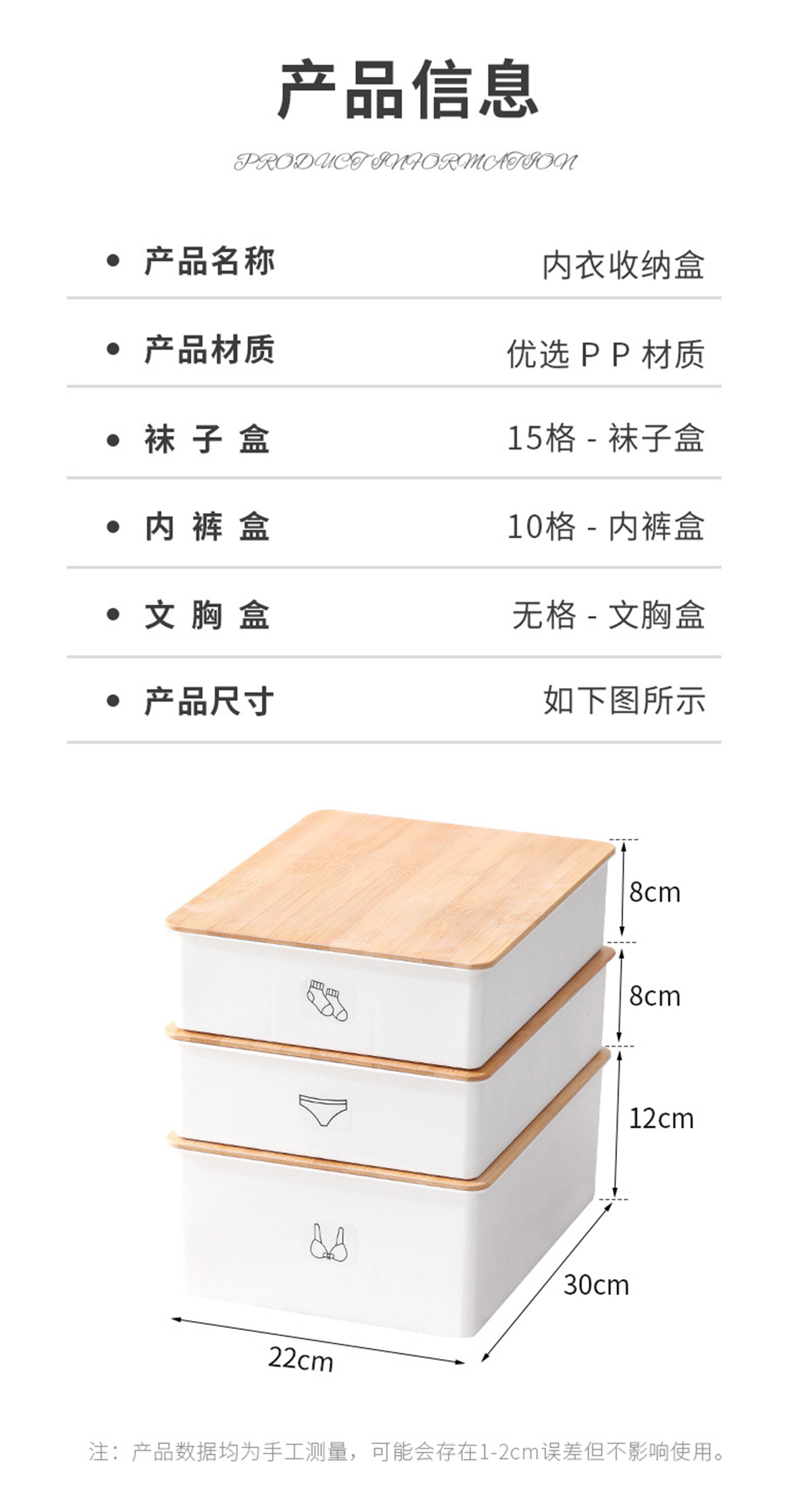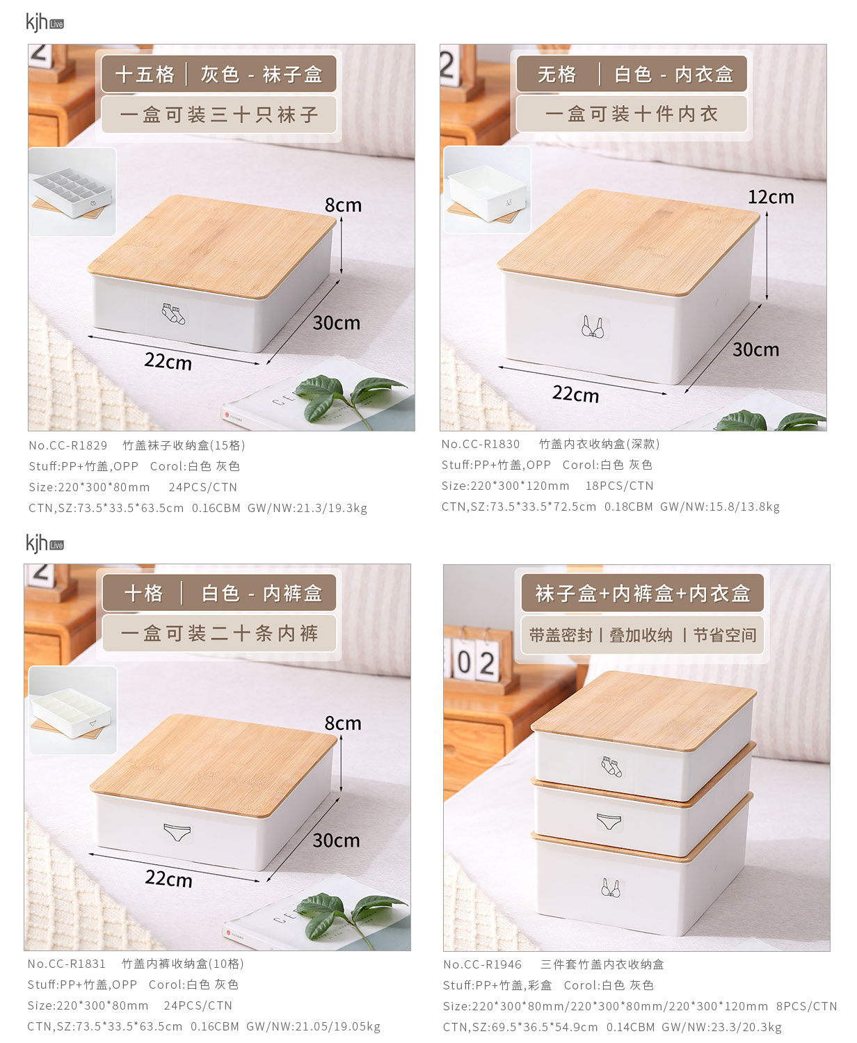 竹蓋內(nèi)褲/襪子/內(nèi)衣/三件套收納盒