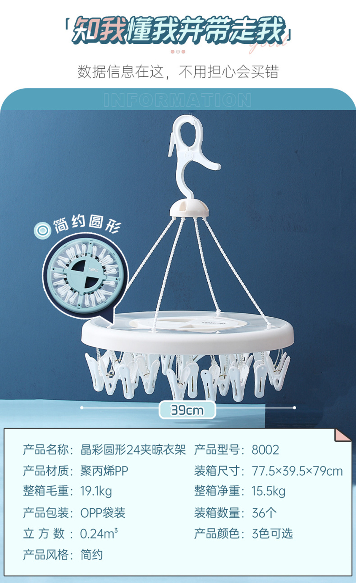 晶彩圓形24夾晾衣架 2023年新色