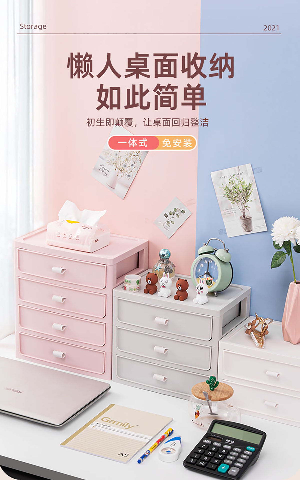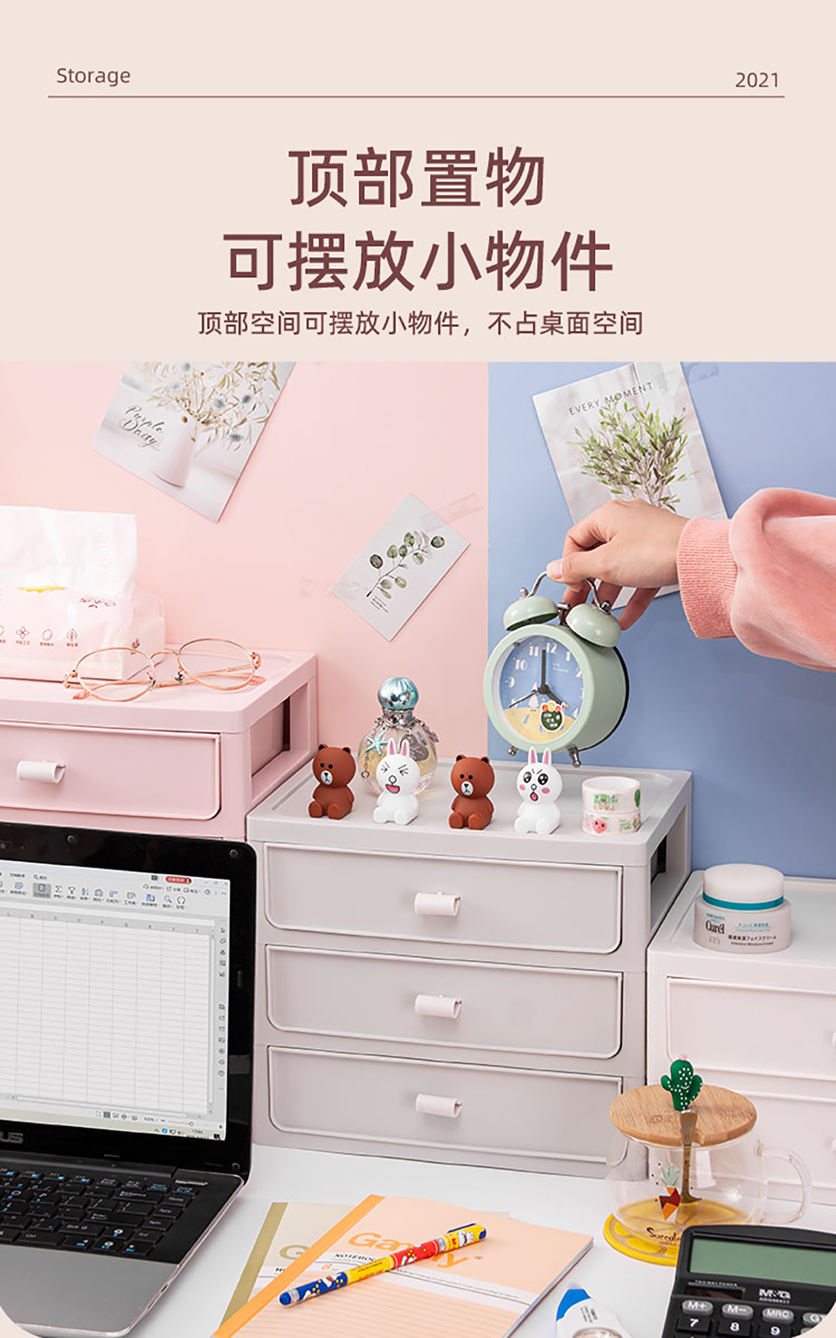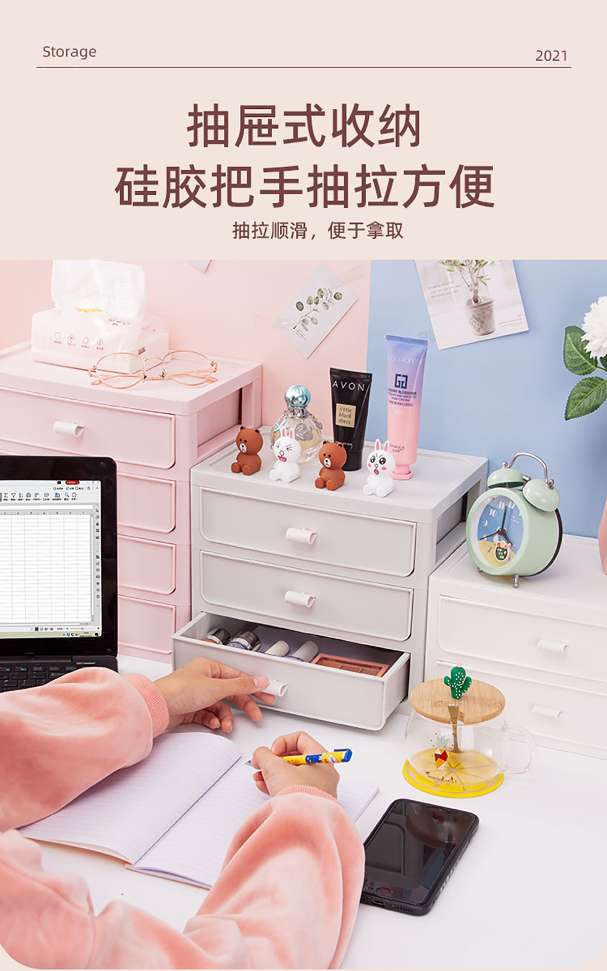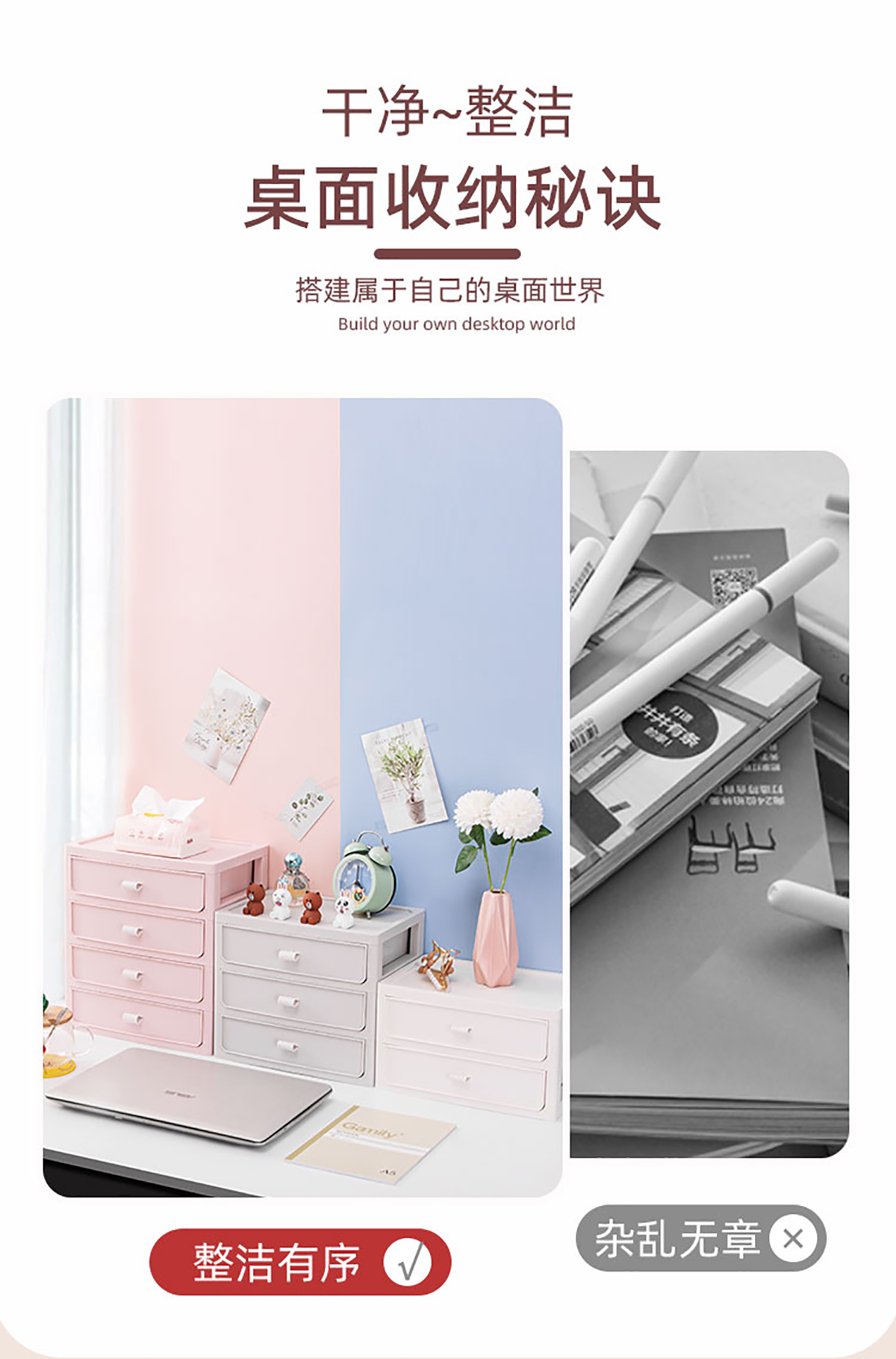 桌面收納柜(二/三/四層)+化妝品收納盒 實(shí)色款