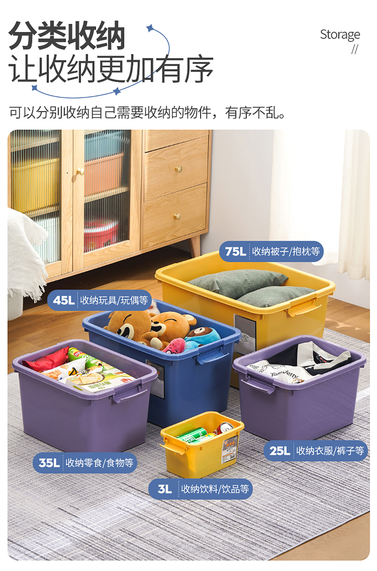 實(shí)色儲(chǔ)物箱3L/8L/12L/25L/35L/45L/55L/75L/100L