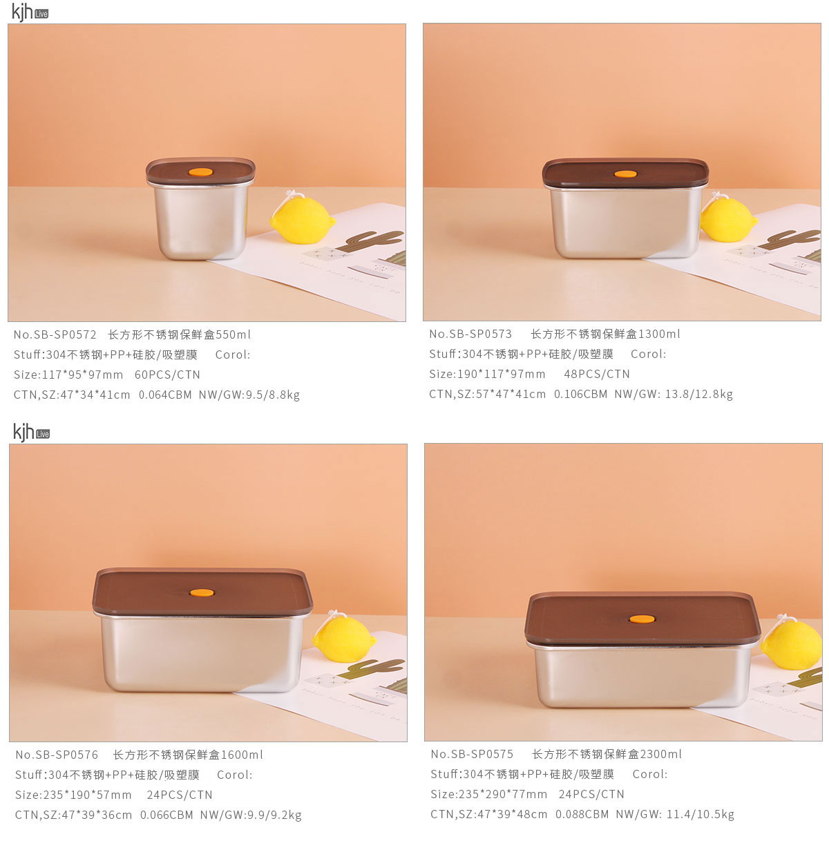 長(zhǎng)方形不銹鋼保鮮盒550ml/1300ml/1600ml/2300ml/2900ml
