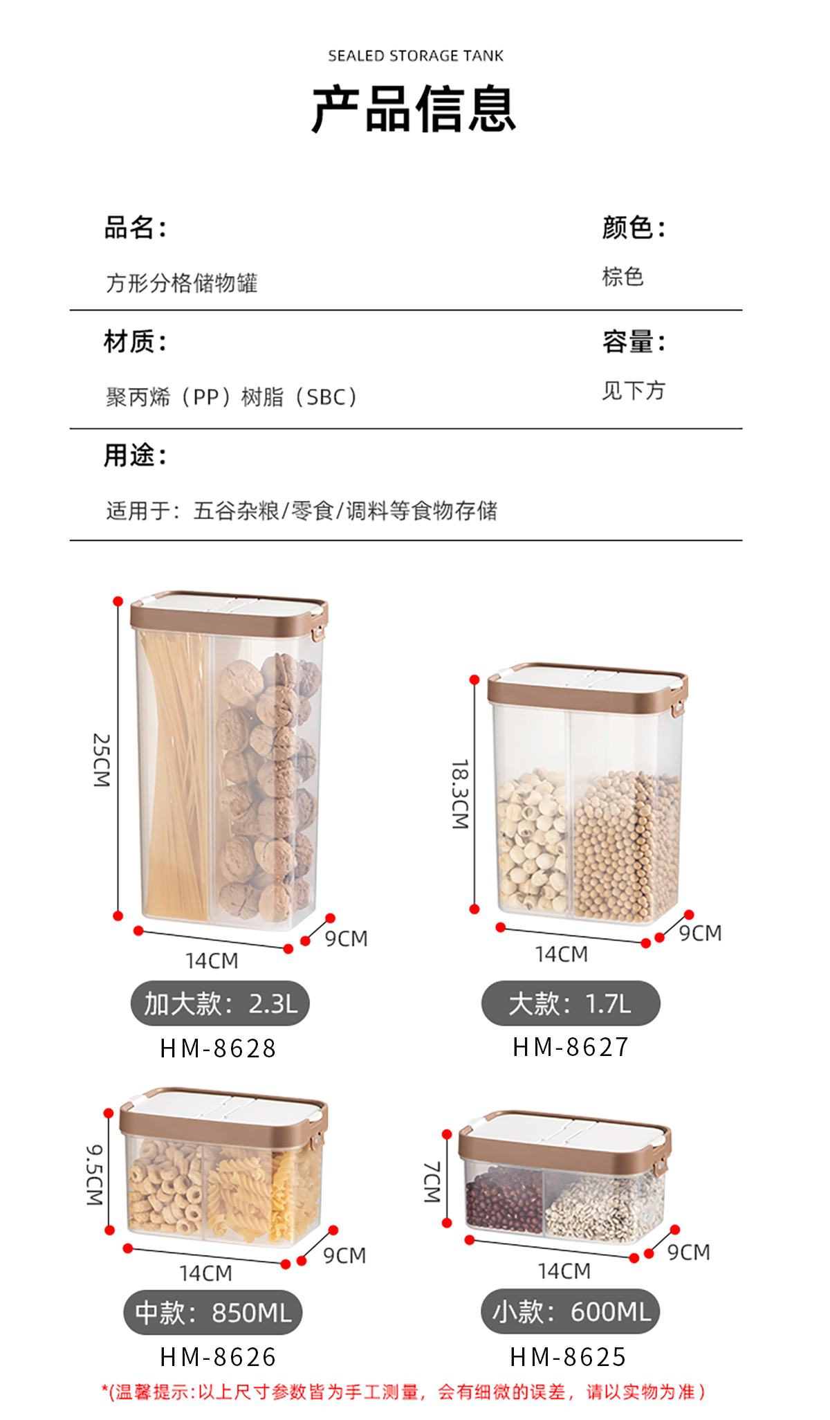 分隔儲(chǔ)物罐小號(hào)/中號(hào)/大號(hào)/加大號(hào)