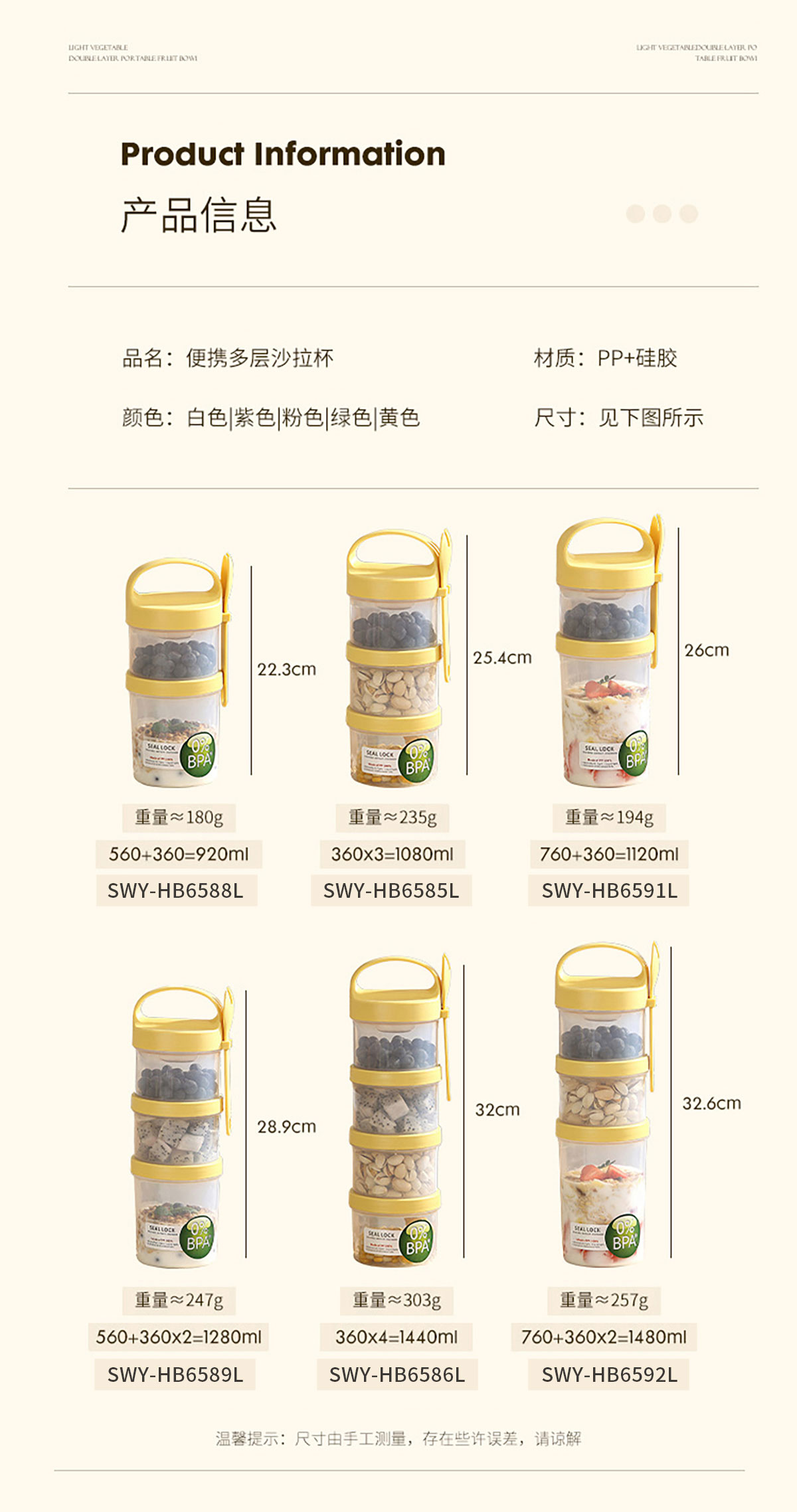 多層沙拉杯920ml/1080ml/1120ml/1280ml/1440ml/1480ml