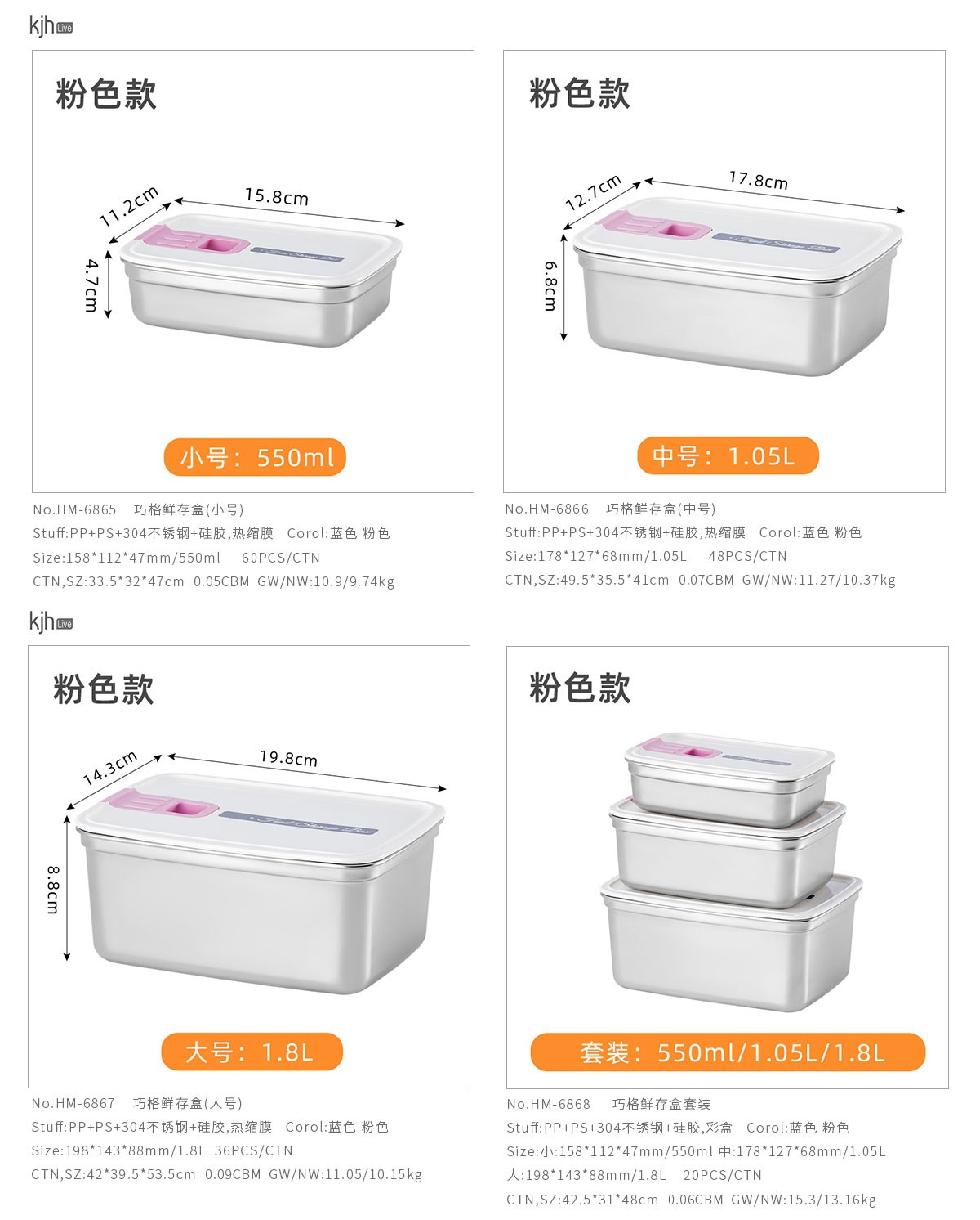 HM-6868(套裝):小:158*112*47mm/550ml 中:178*127*68mm/1.05L 大:198*143*88mm/1.8L