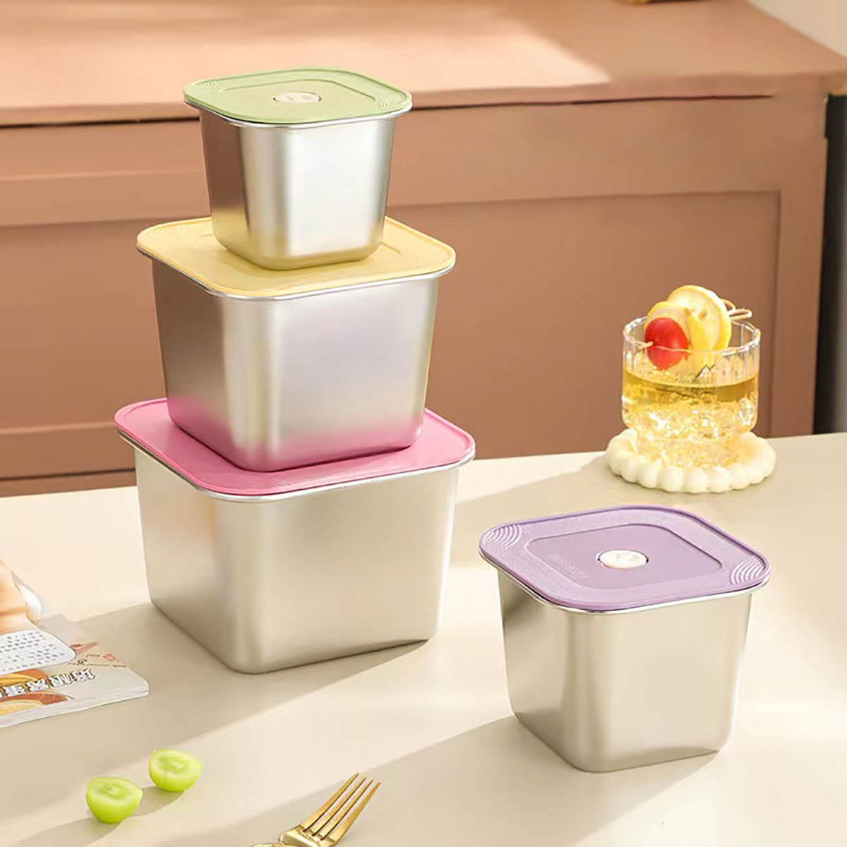201#不銹鋼保鮮盒套裝加高款