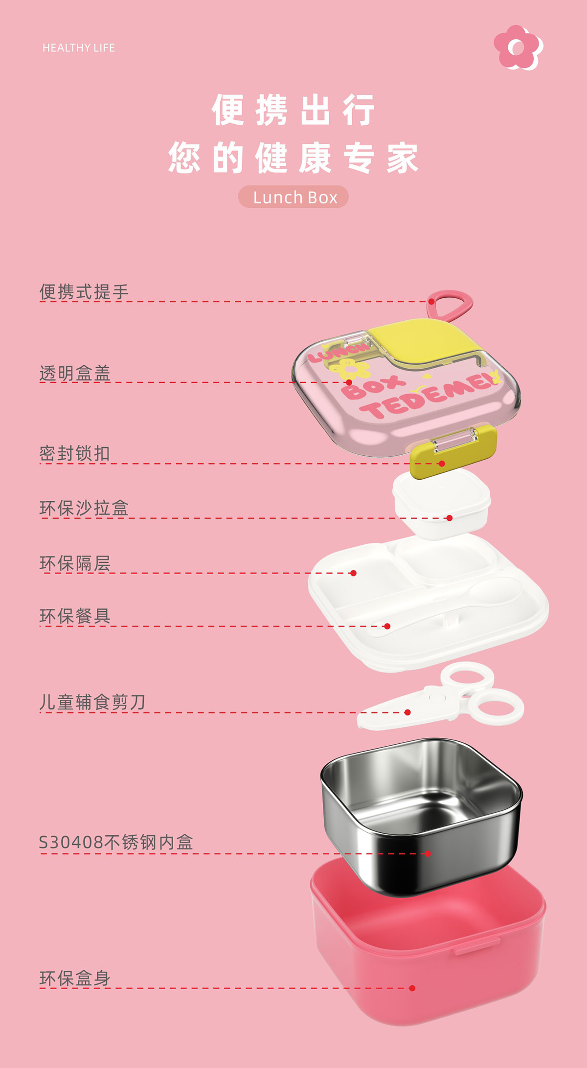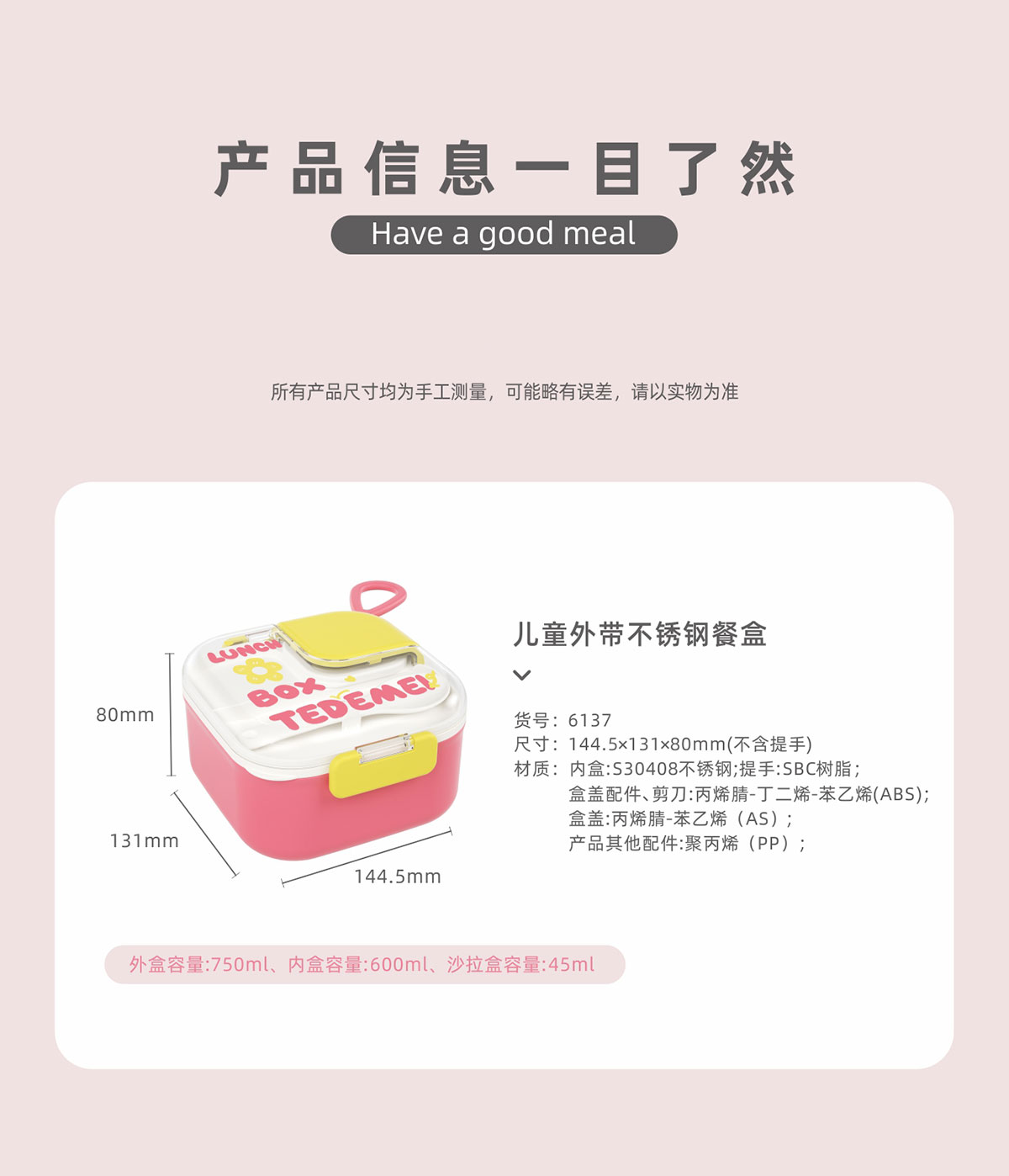 Size: 145*131*80mm/外盒:750ml/內盒:600ml/沙拉盒:45ml