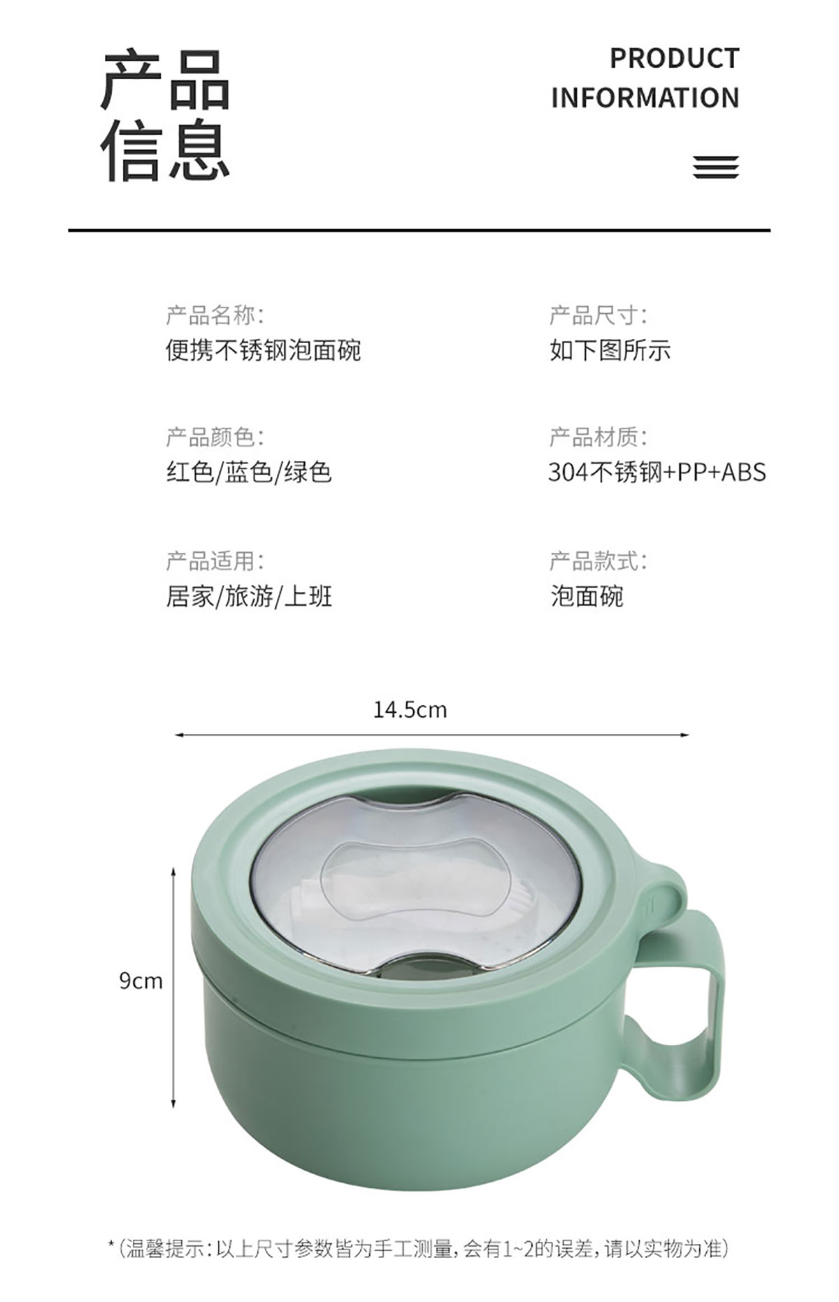 旋蓋304不銹鋼泡面碗