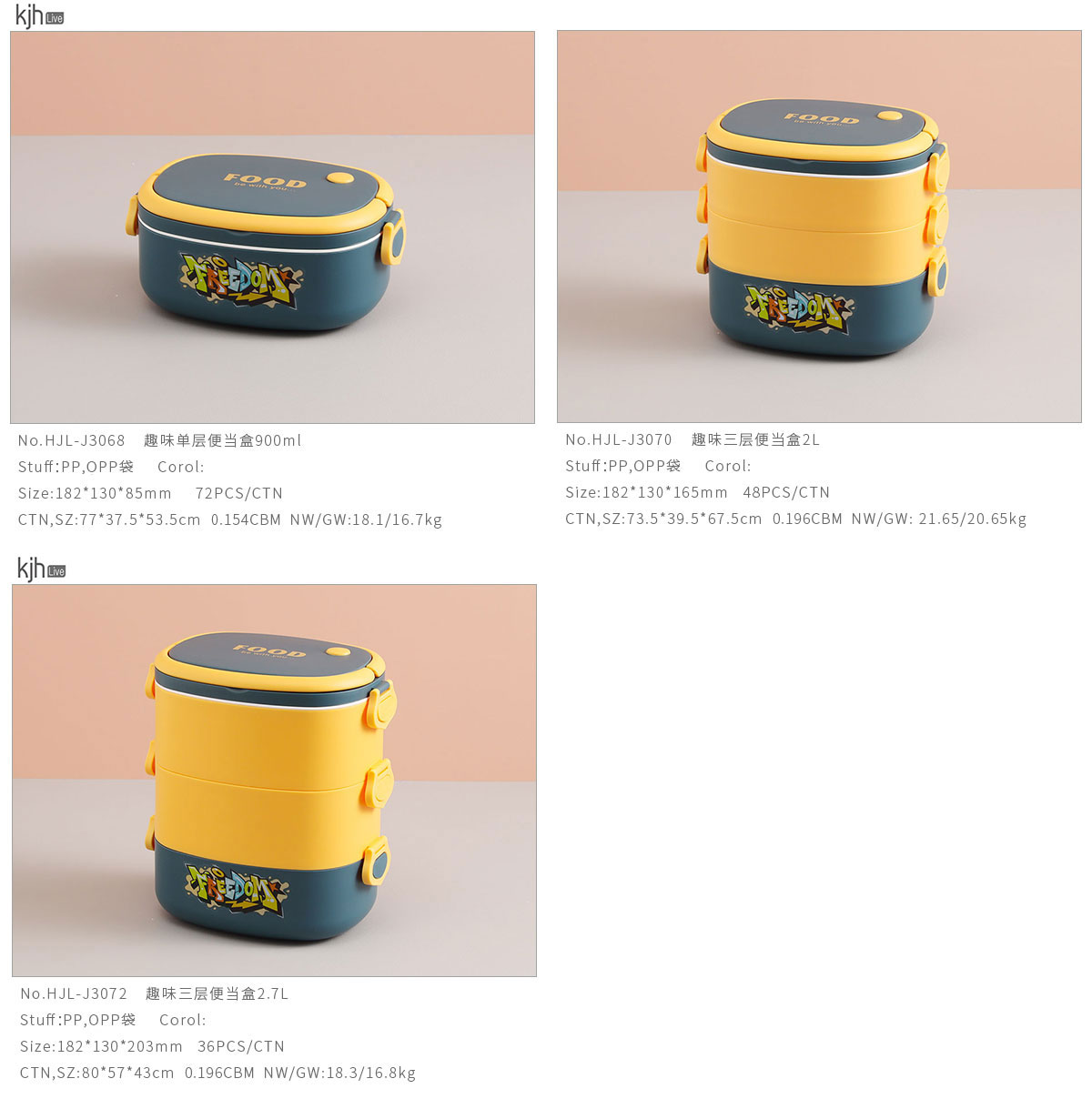 趣味單層/二層/三層便當(dāng)盒900ml/1.45L/1.8L/2L/2.7L