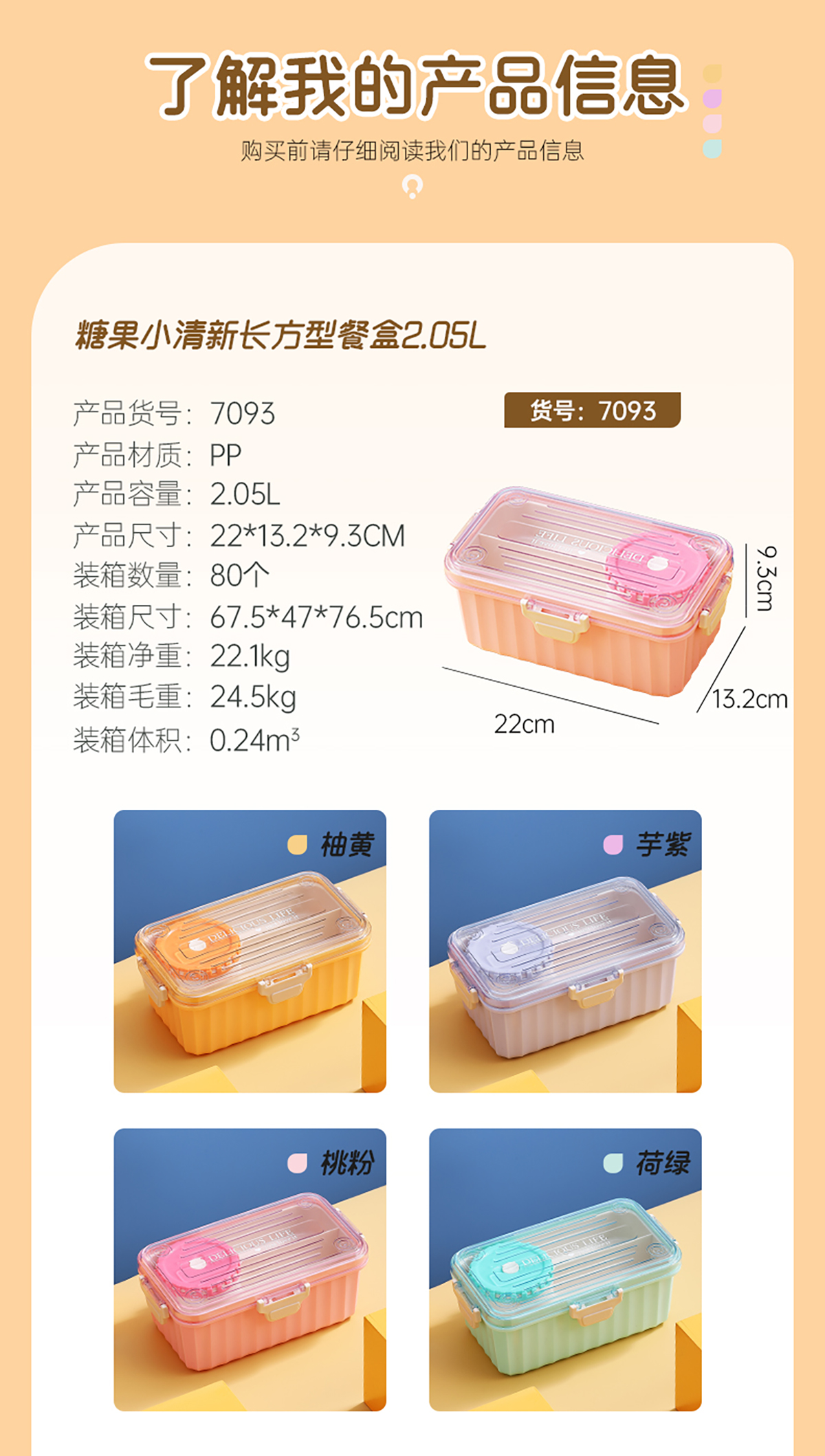 糖果小清新長方型餐盒2.05L/2.15L