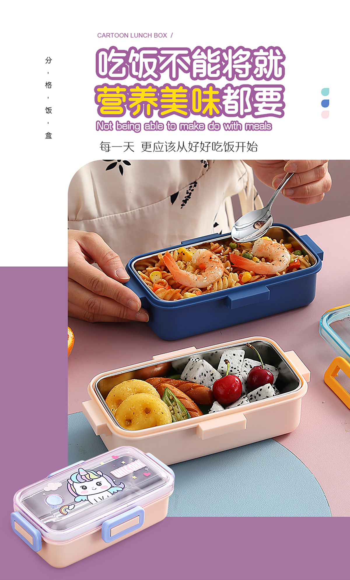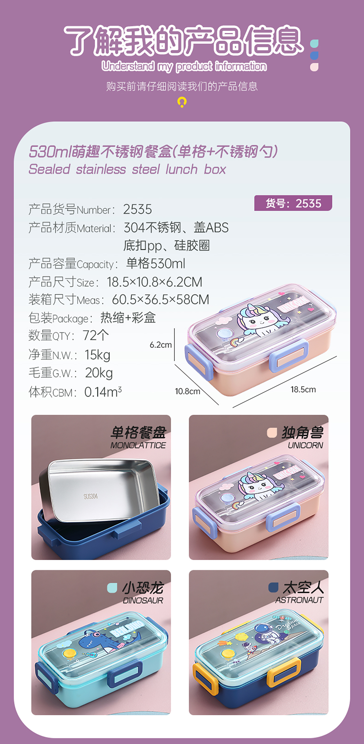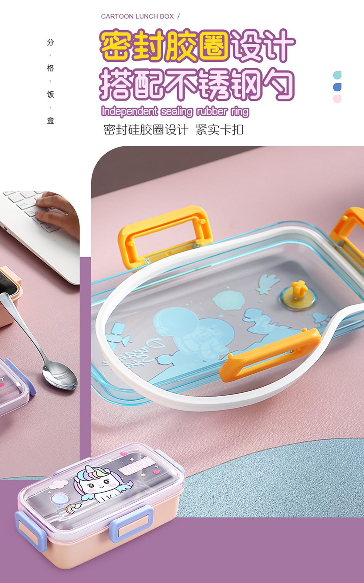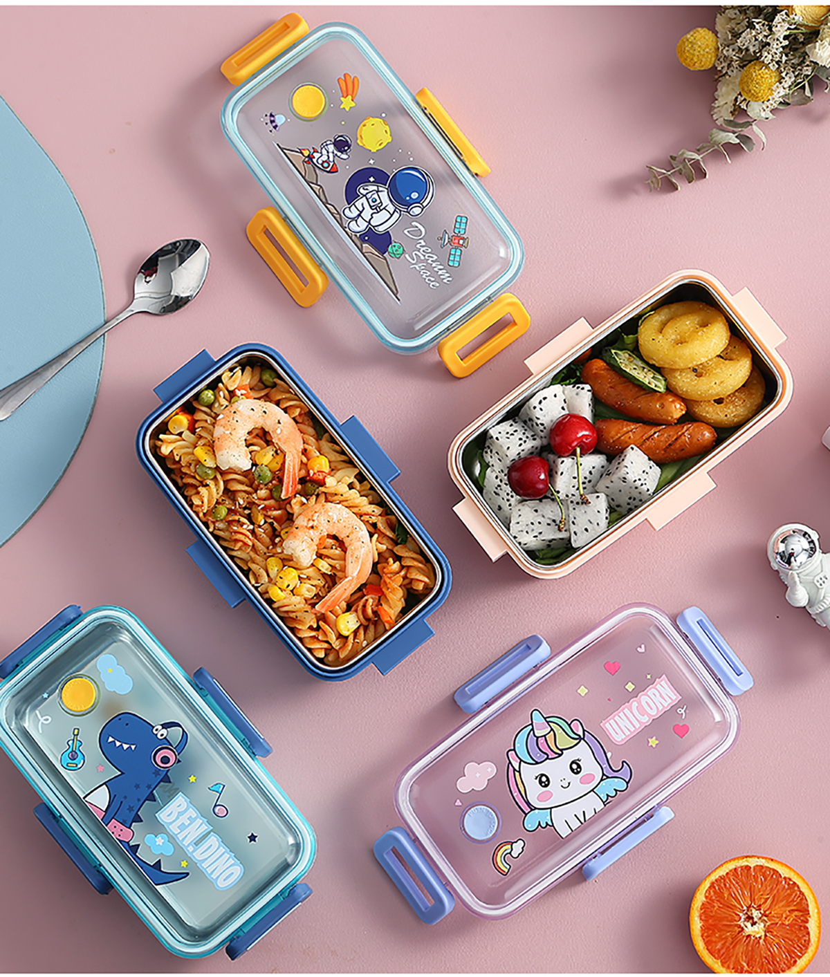 530ml萌趣迷你密封不銹鋼餐盒(單格+不銹鋼勺)