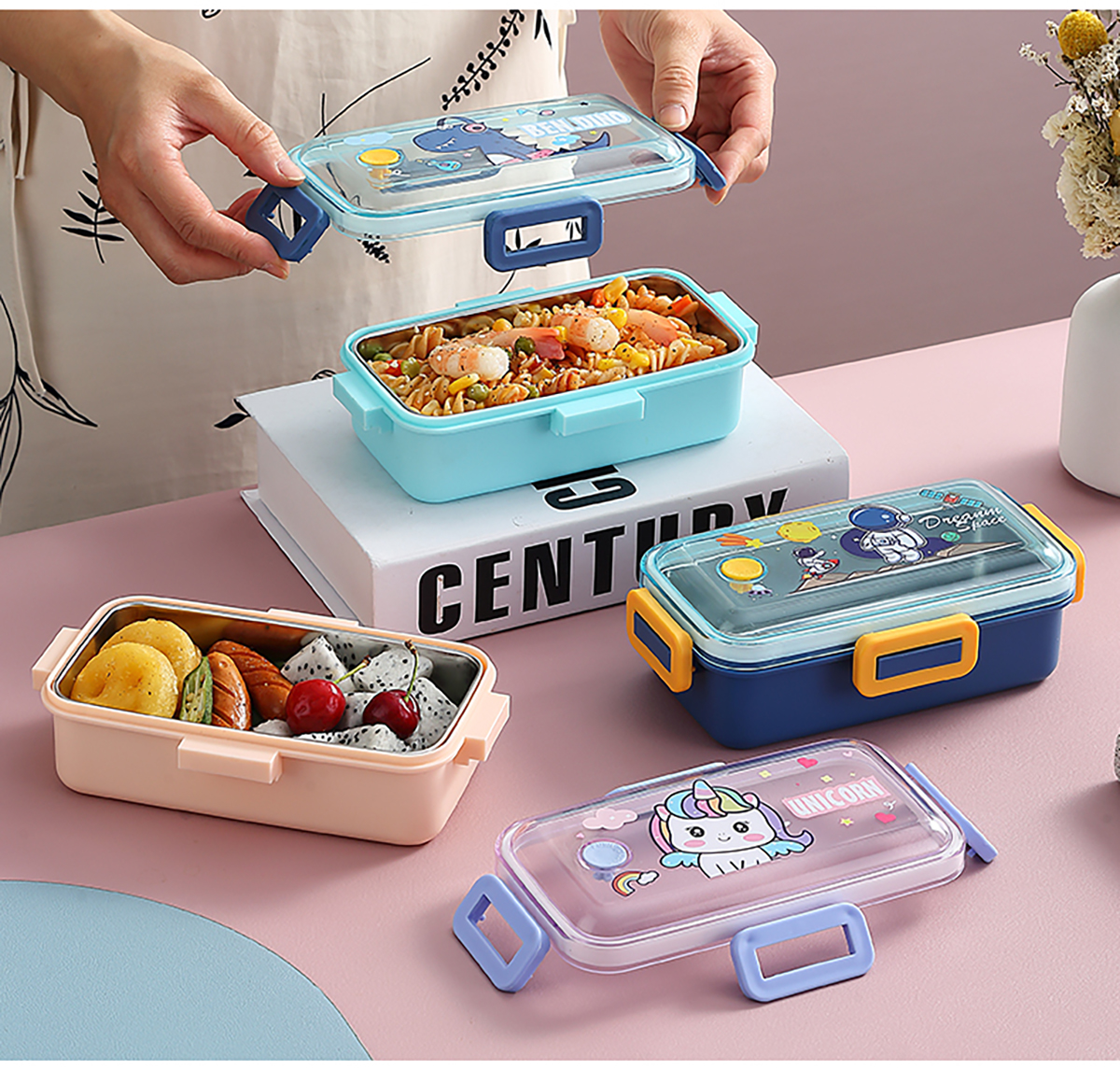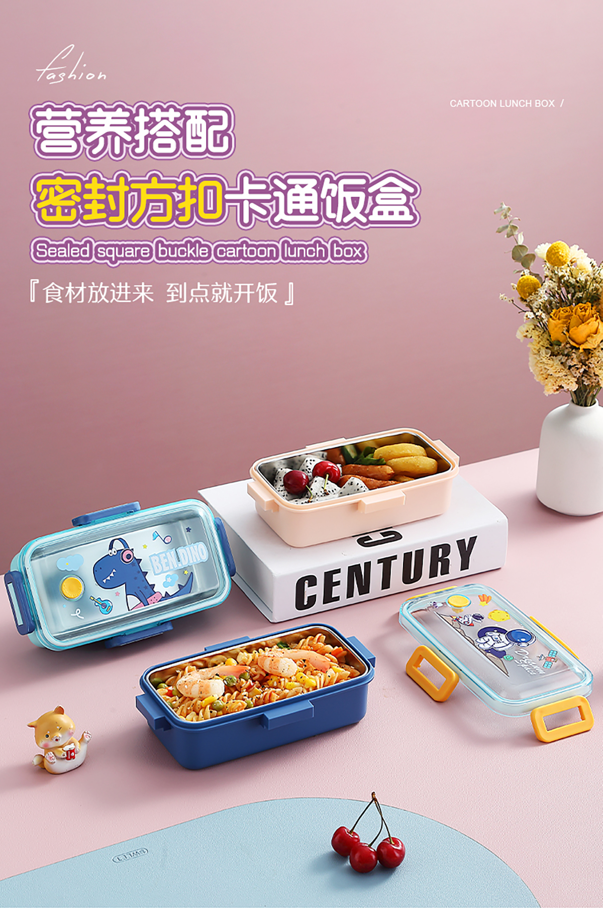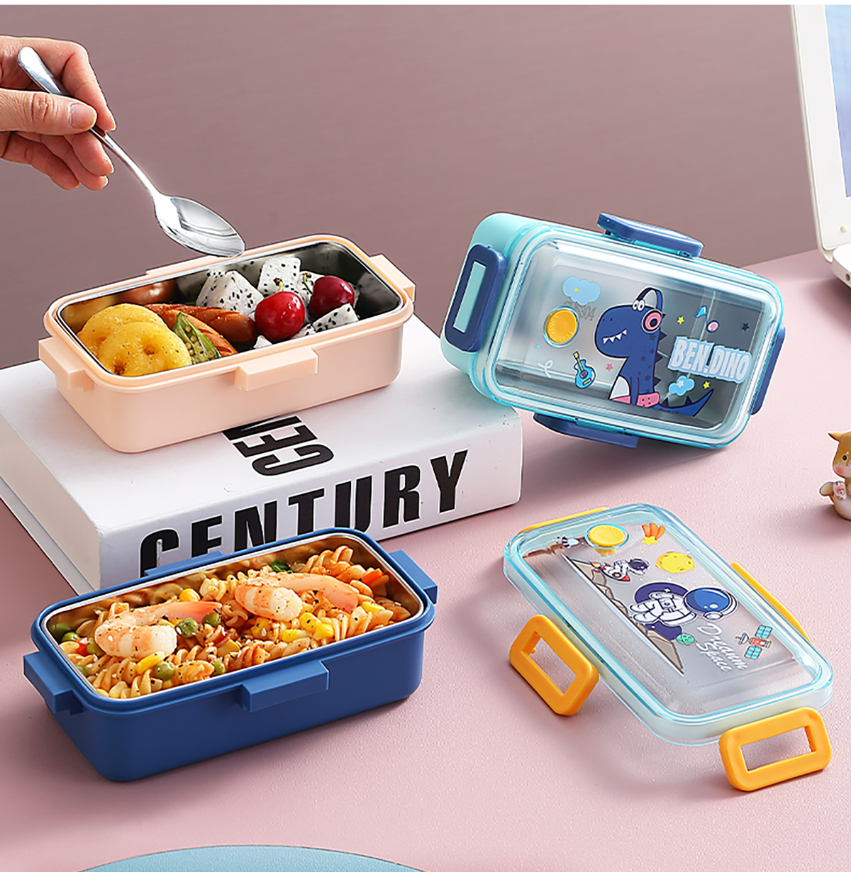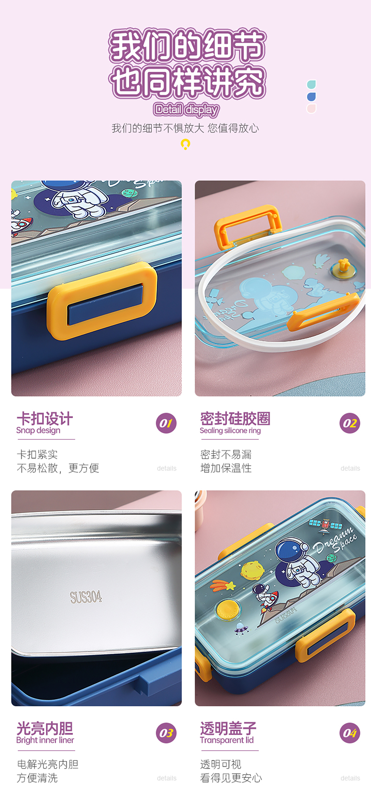 530ml萌趣迷你密封不銹鋼餐盒(單格+不銹鋼勺)