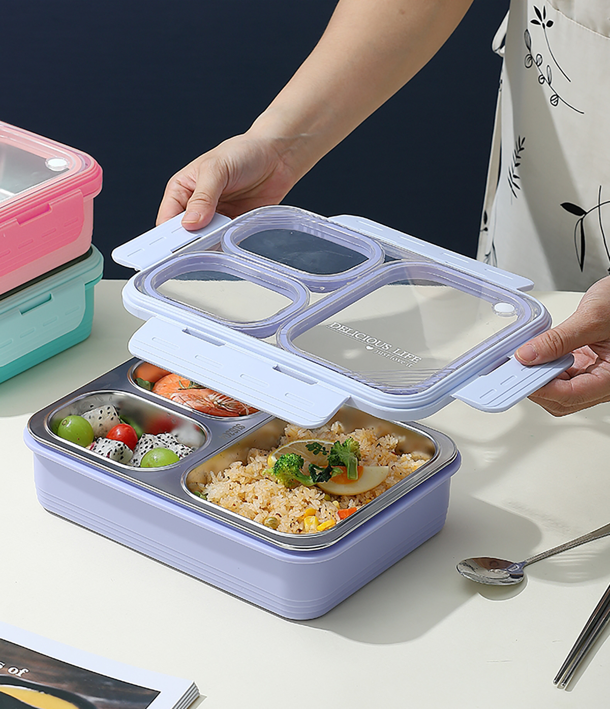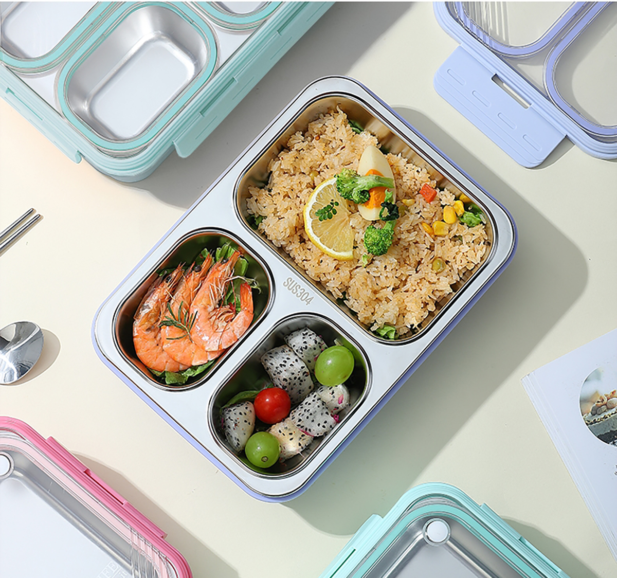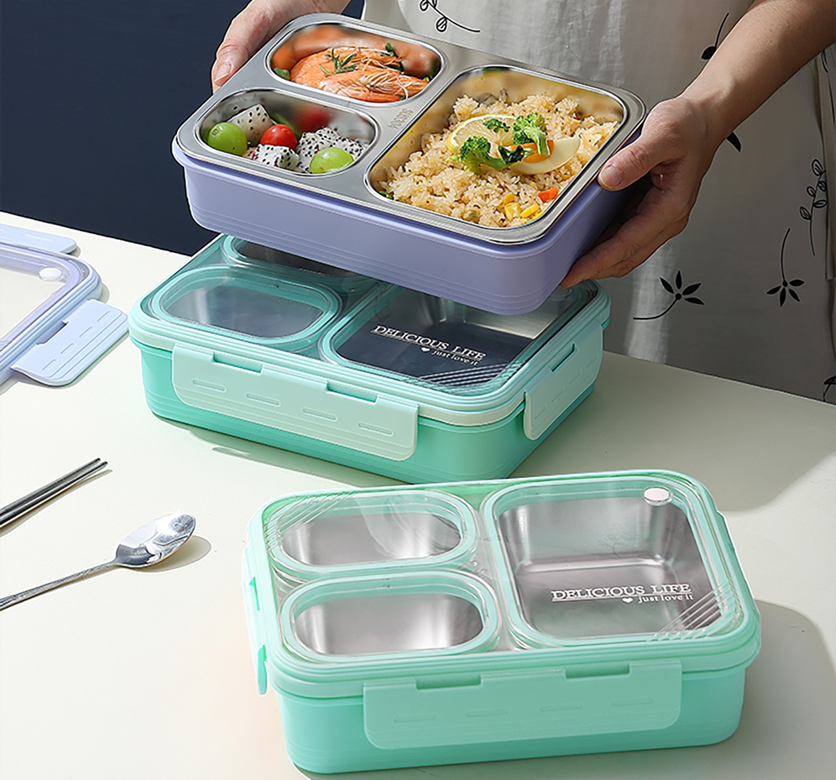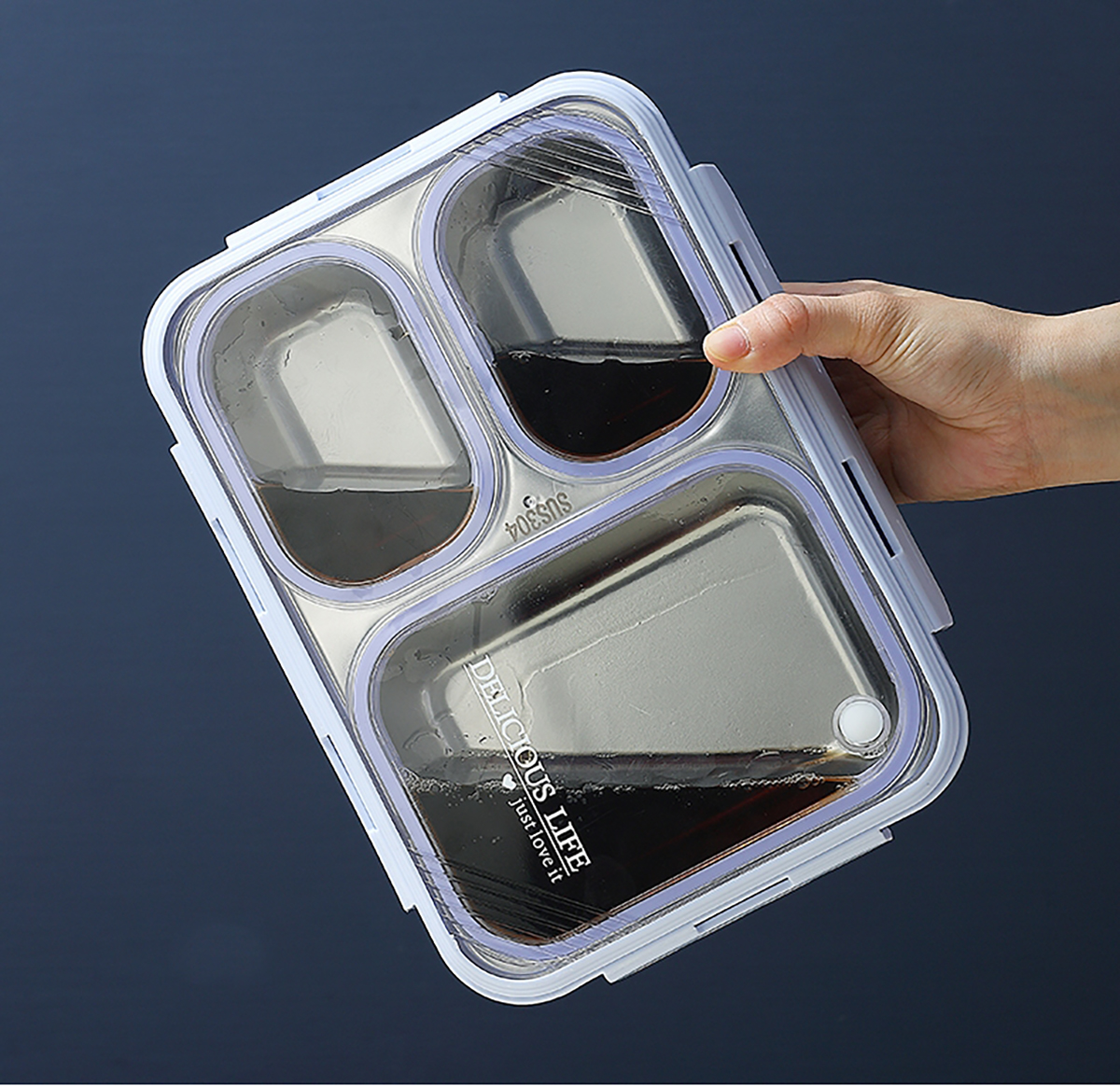 中號3格不串味不銹鋼餐盒850ml
