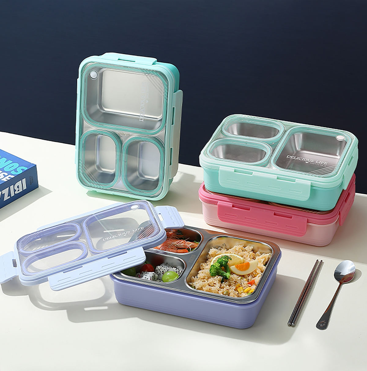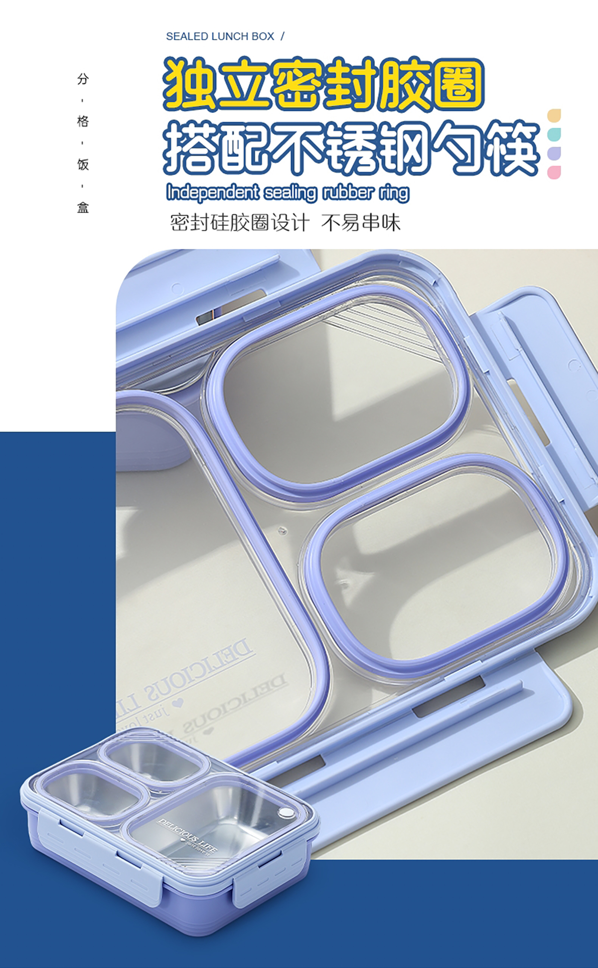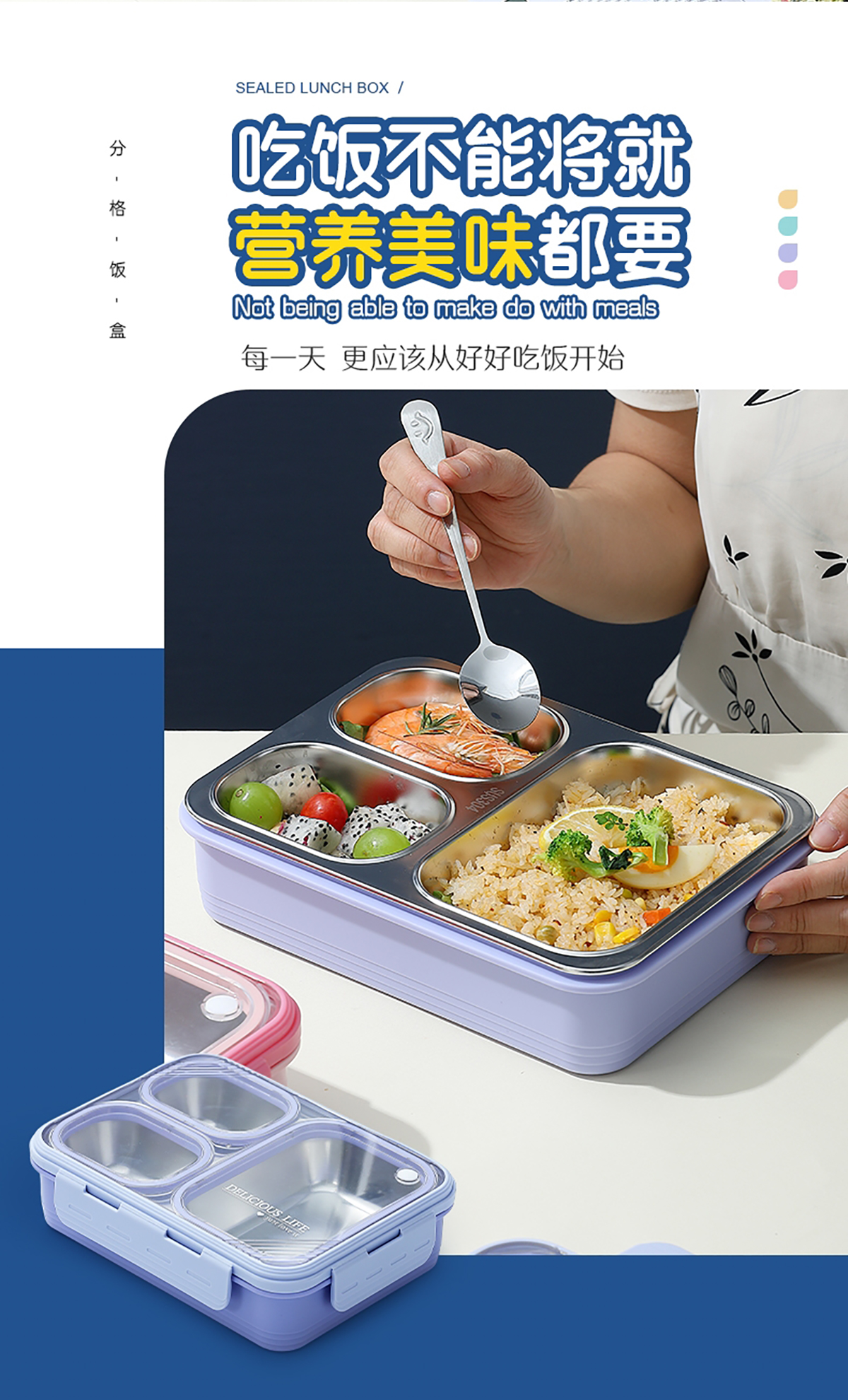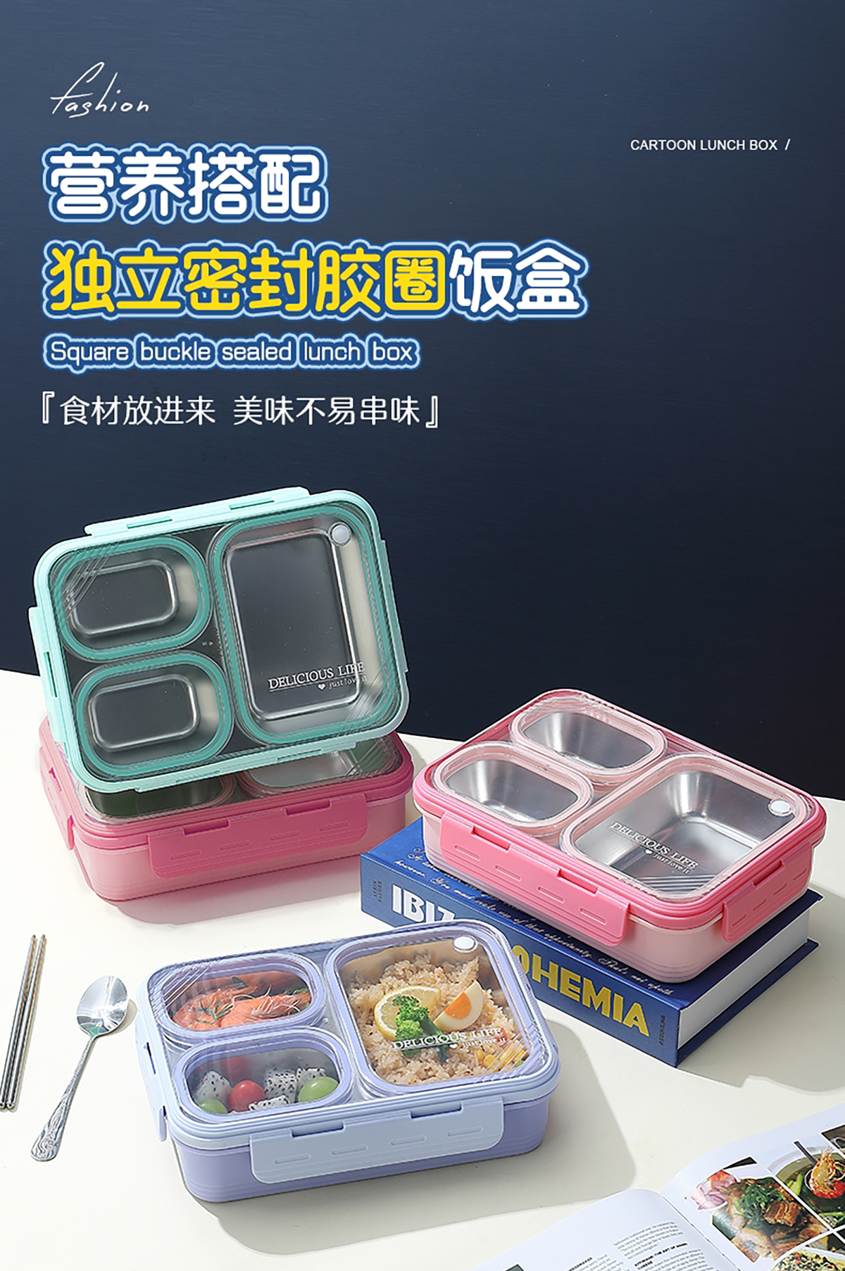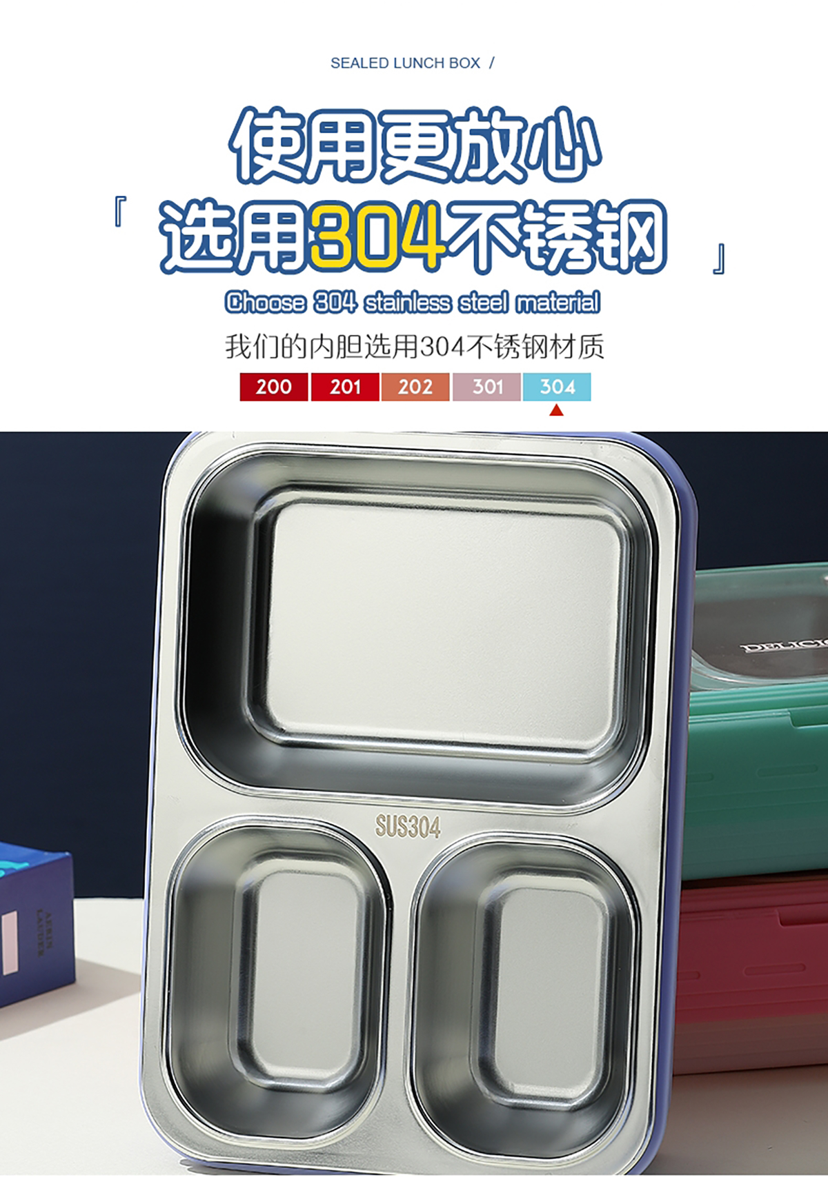 中號3格不串味不銹鋼餐盒850ml