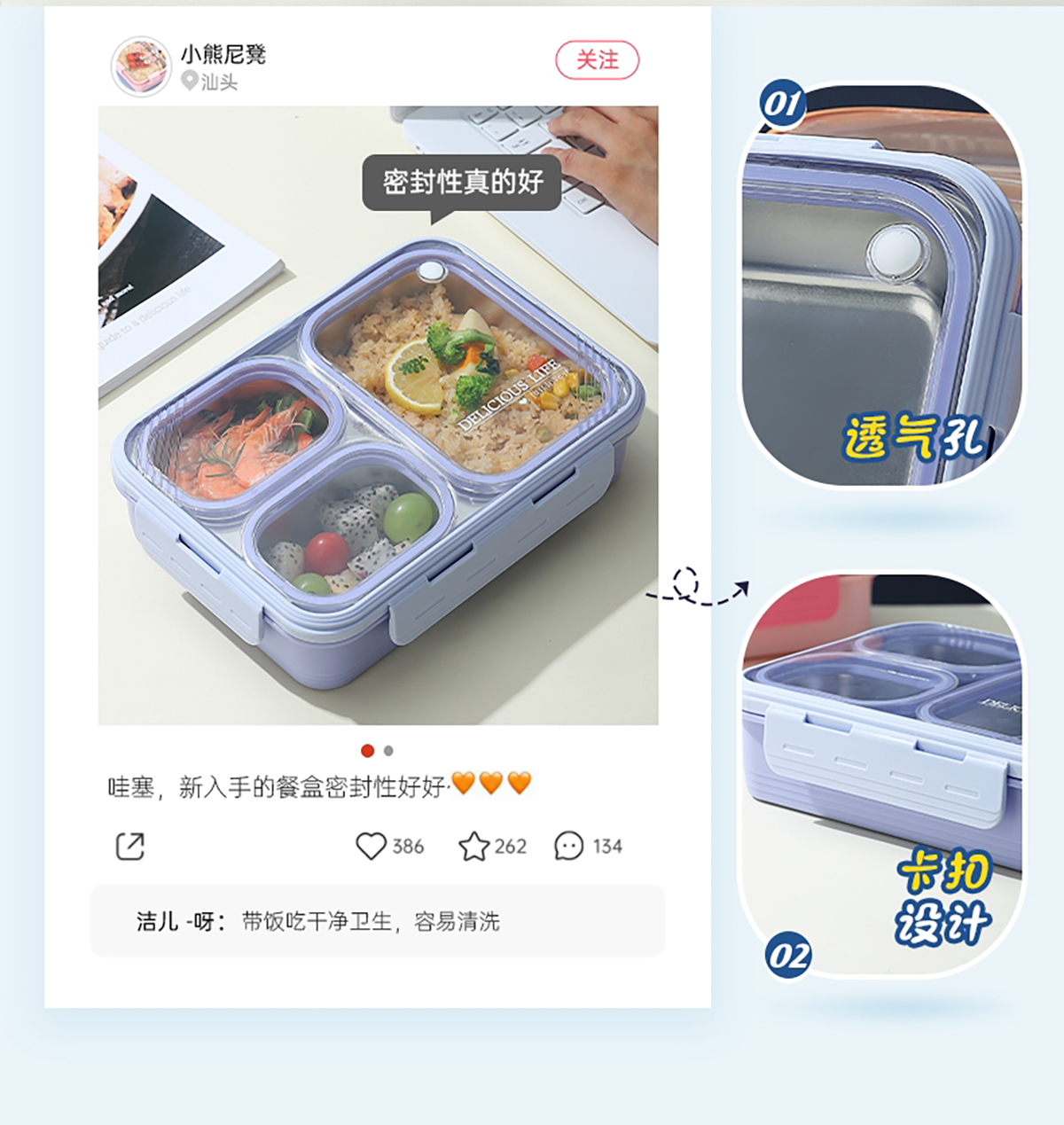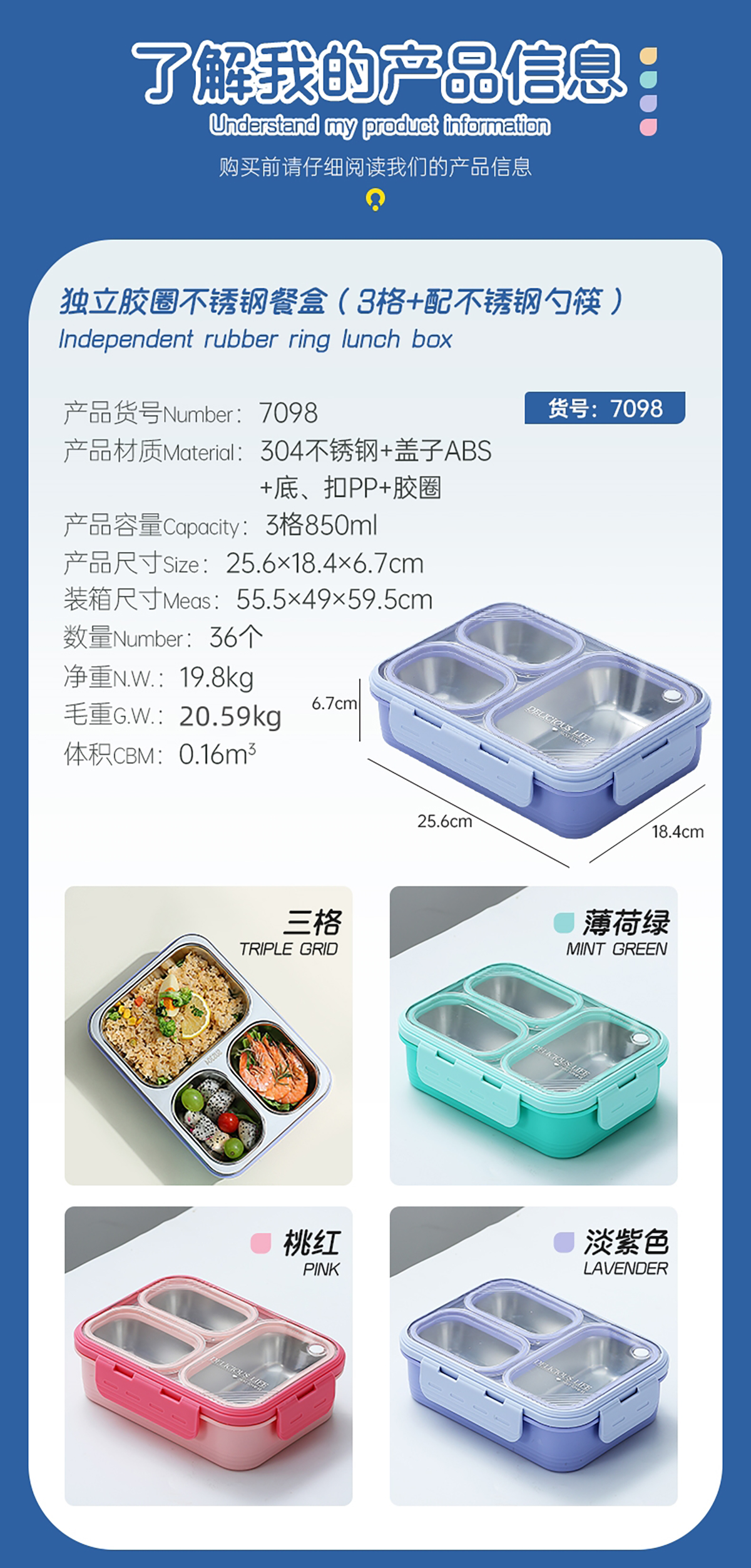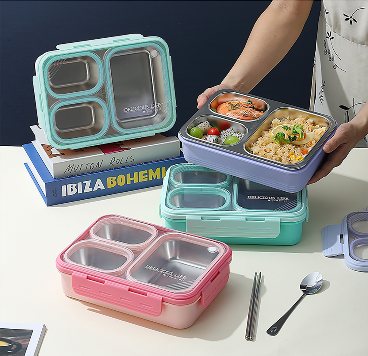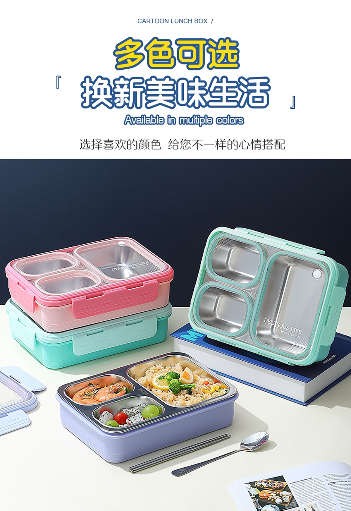 中號3格不串味不銹鋼餐盒850ml