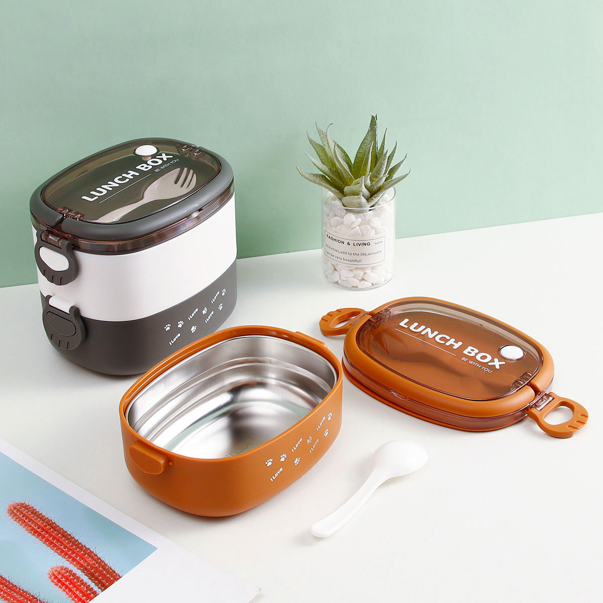 樂(lè)趣橢圓單層/雙層/三層不銹鋼便當(dāng)盒