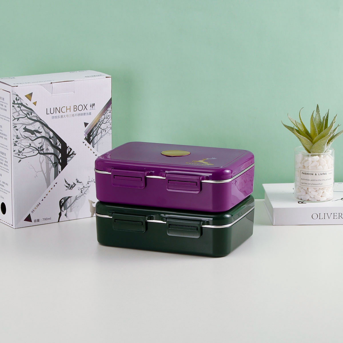 悠悅樂漫大號三格不銹鋼便當(dāng)盒(790ml) 2023新色