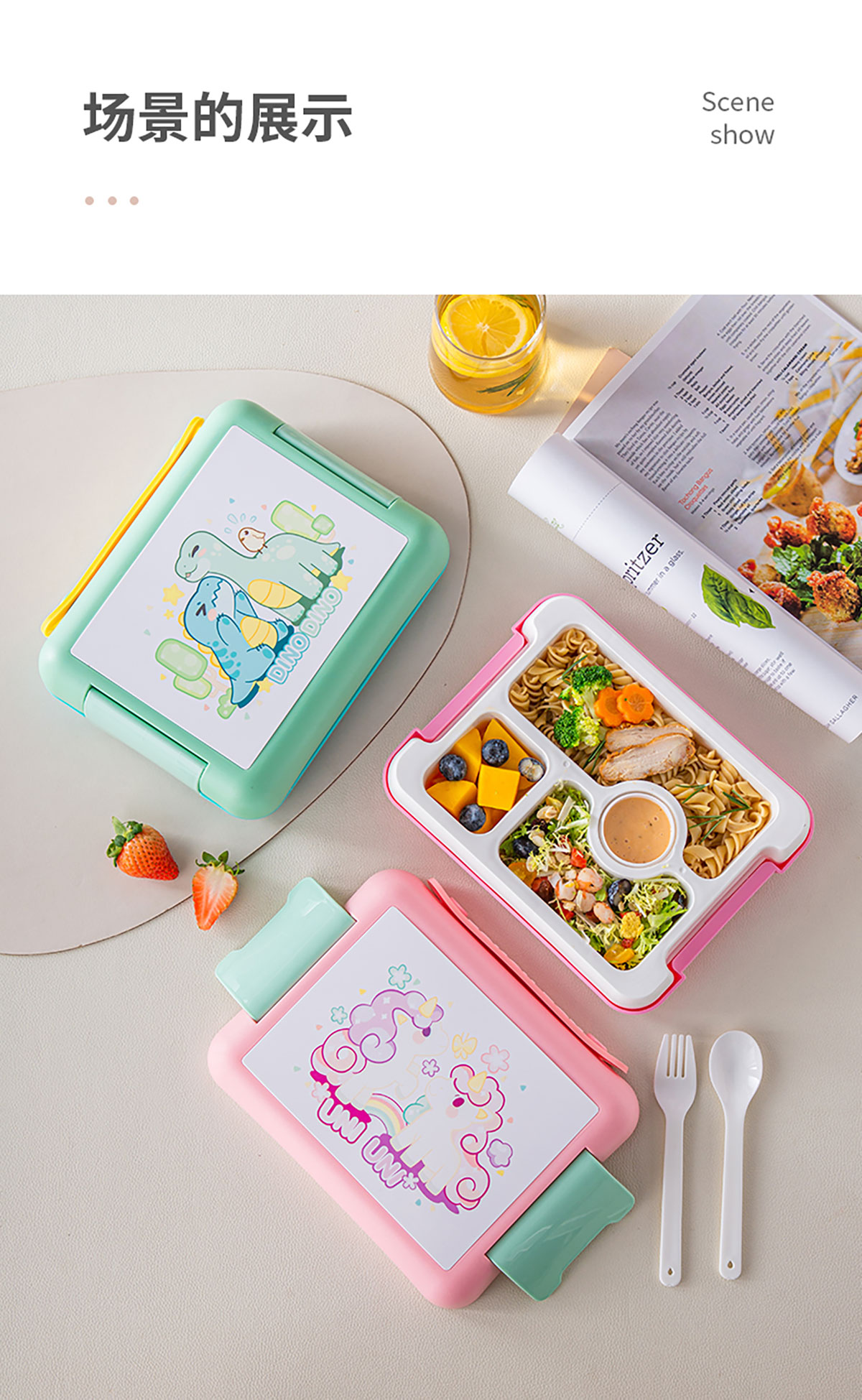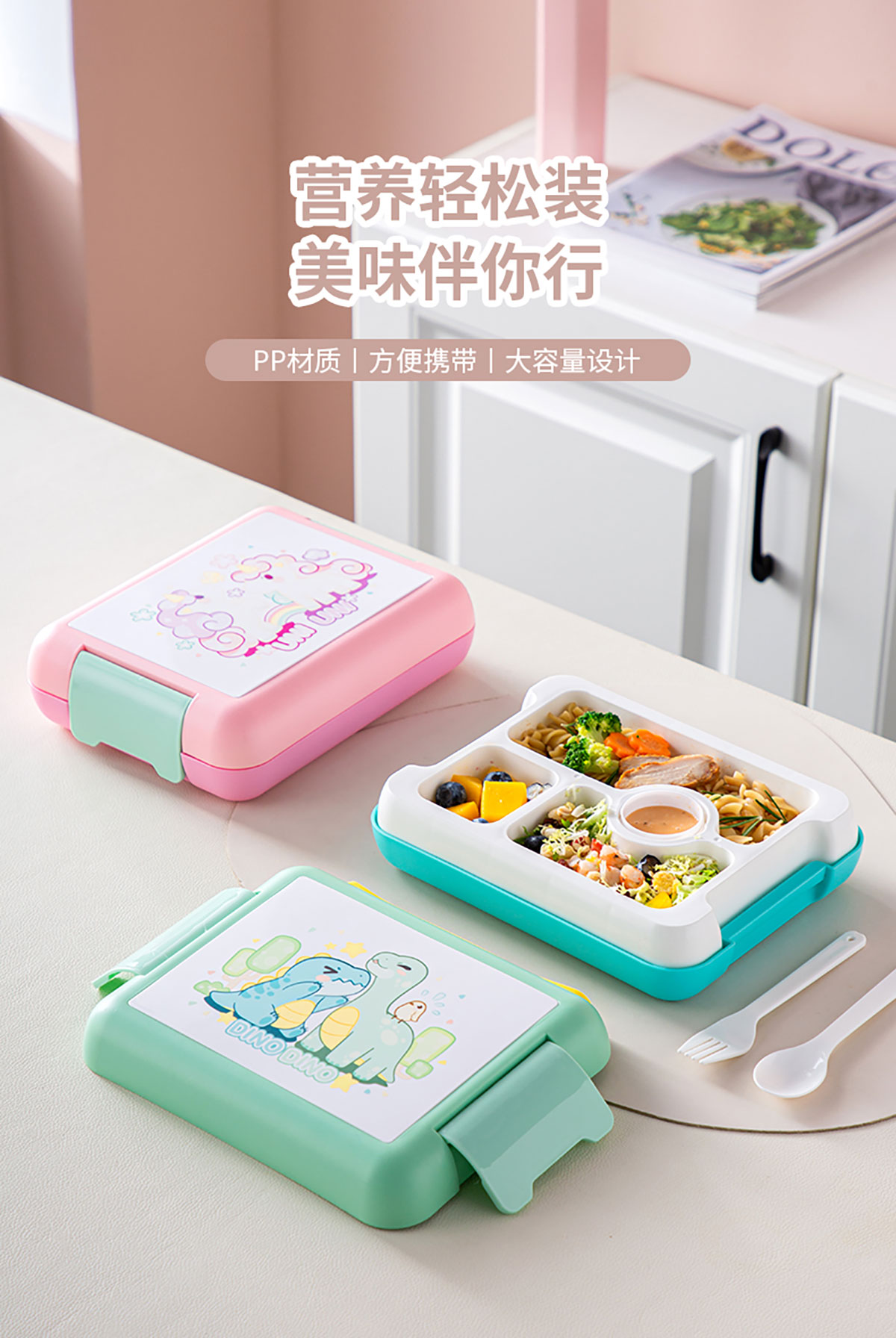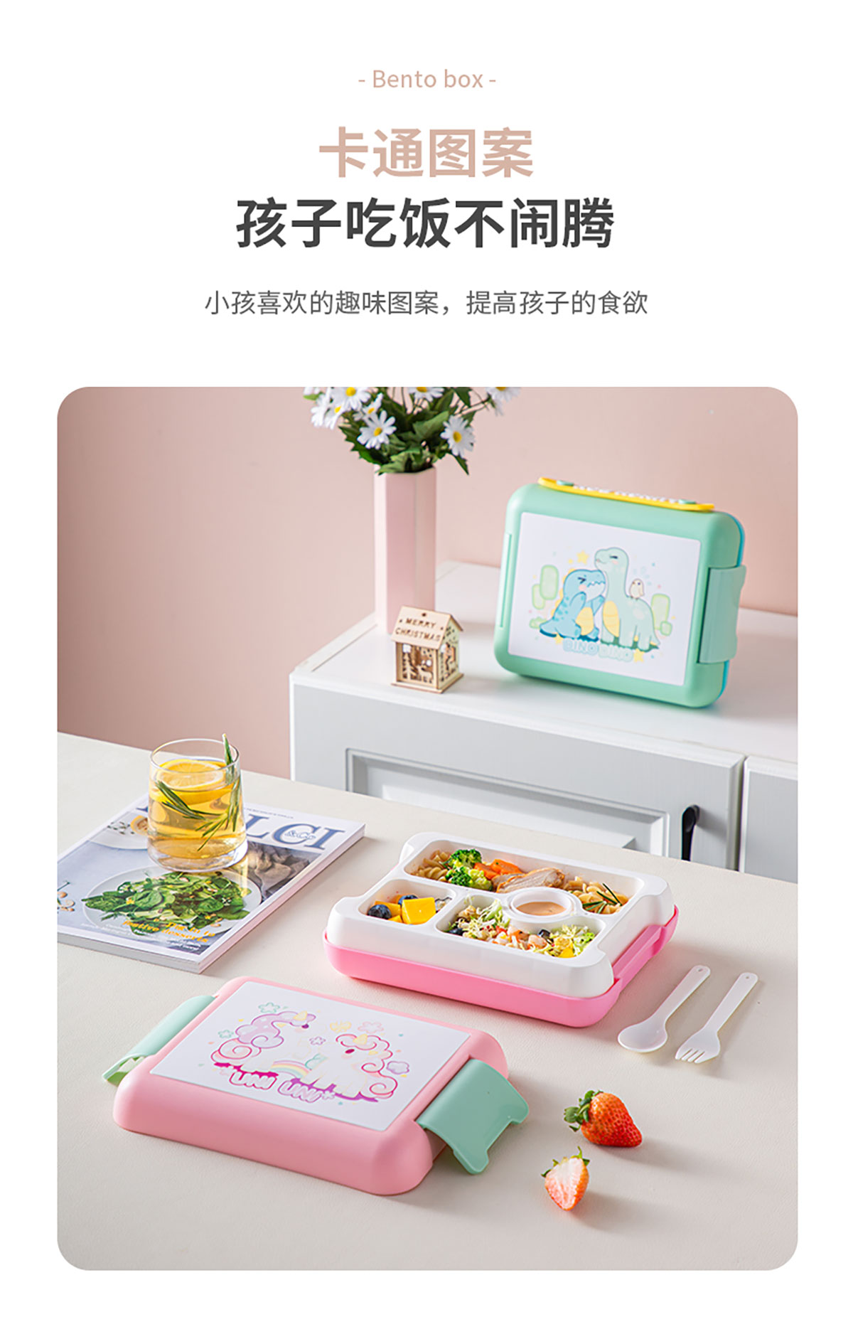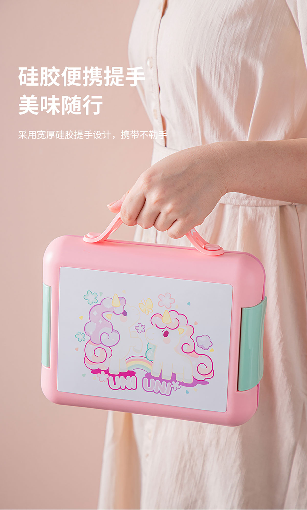 手提卡通款飯盒1400ml