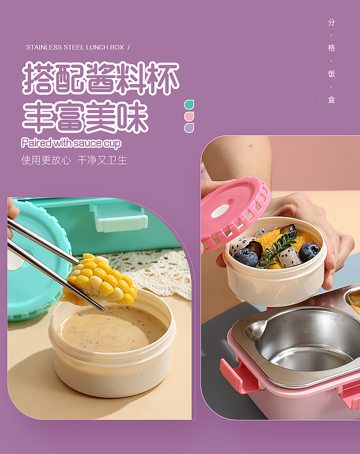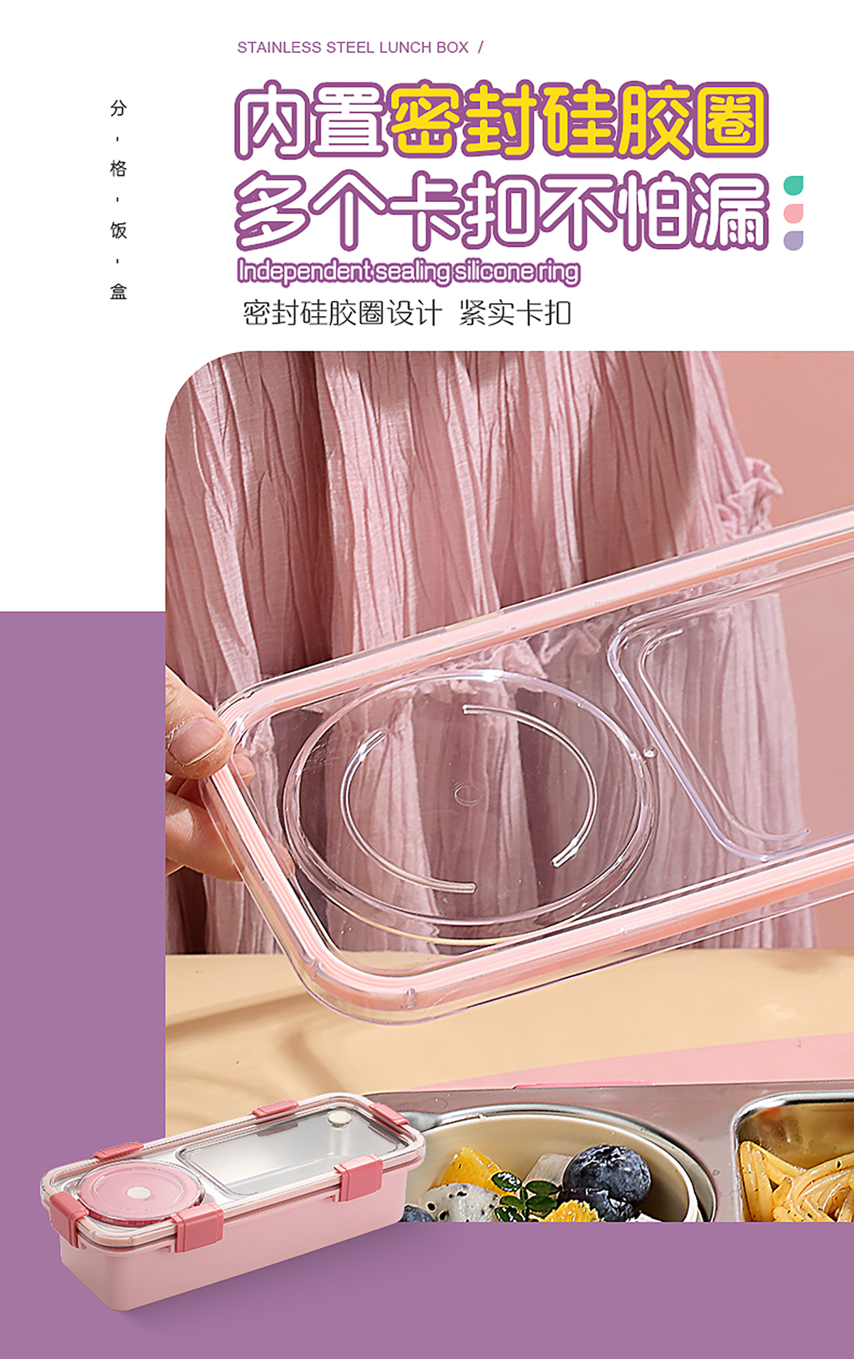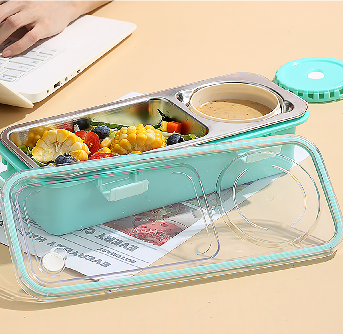 輕食不銹鋼餐盒兩格帶碗600ml+150ml