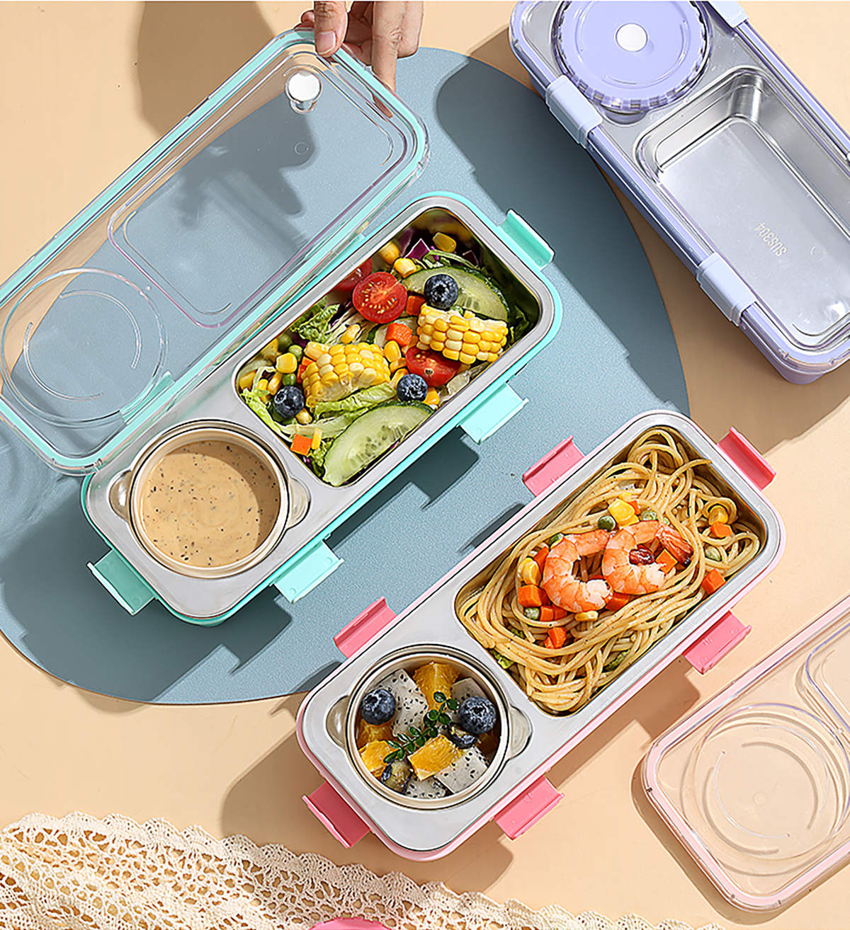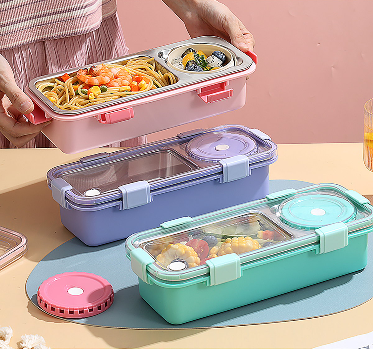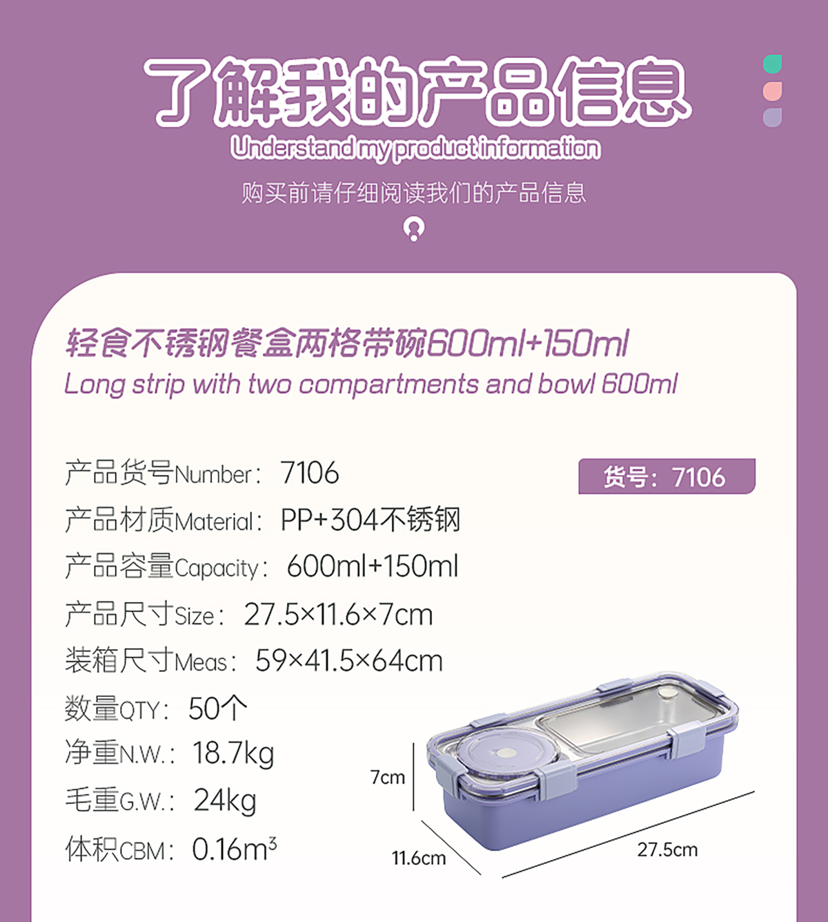 輕食不銹鋼餐盒兩格帶碗600ml+150ml
