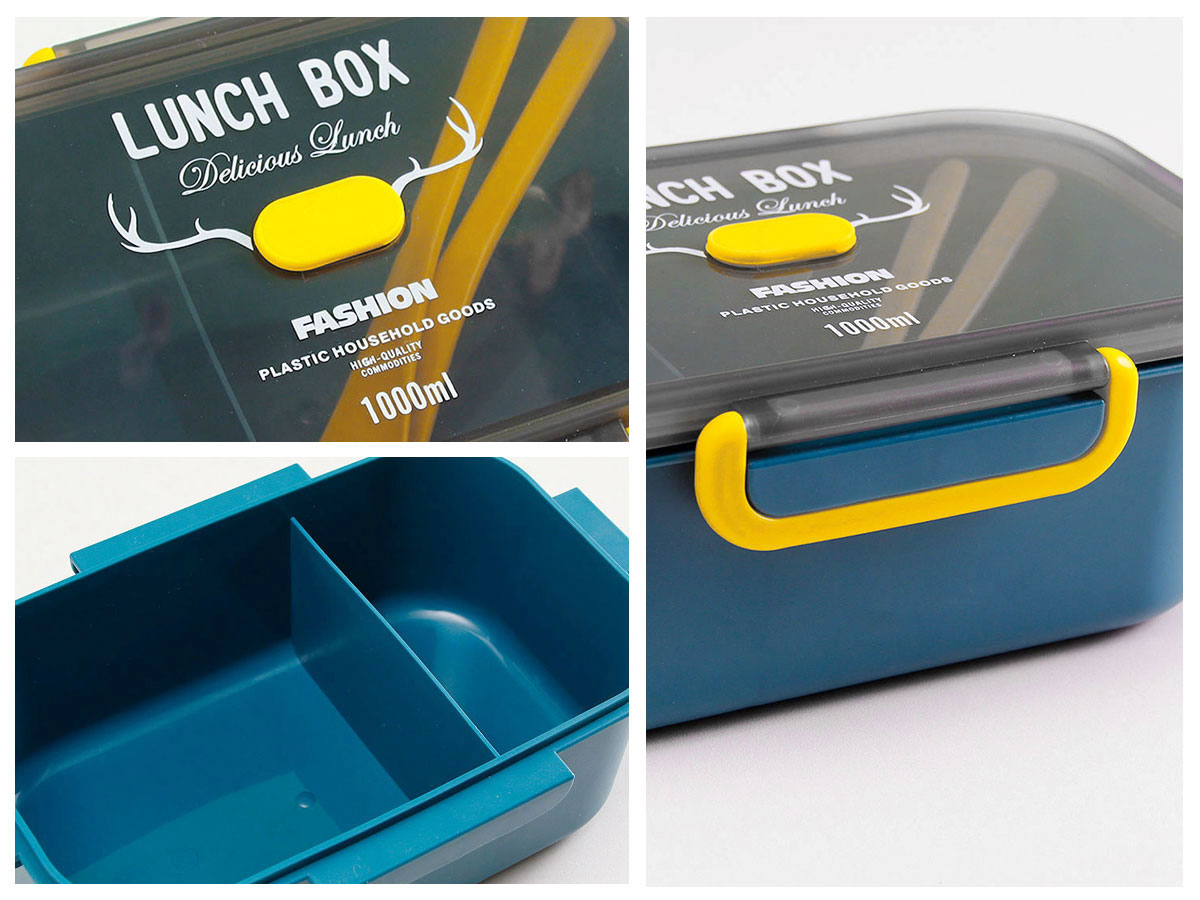 長方單層分格密封飯盒(1000ml)+圓形/八角隨行杯(500ml)