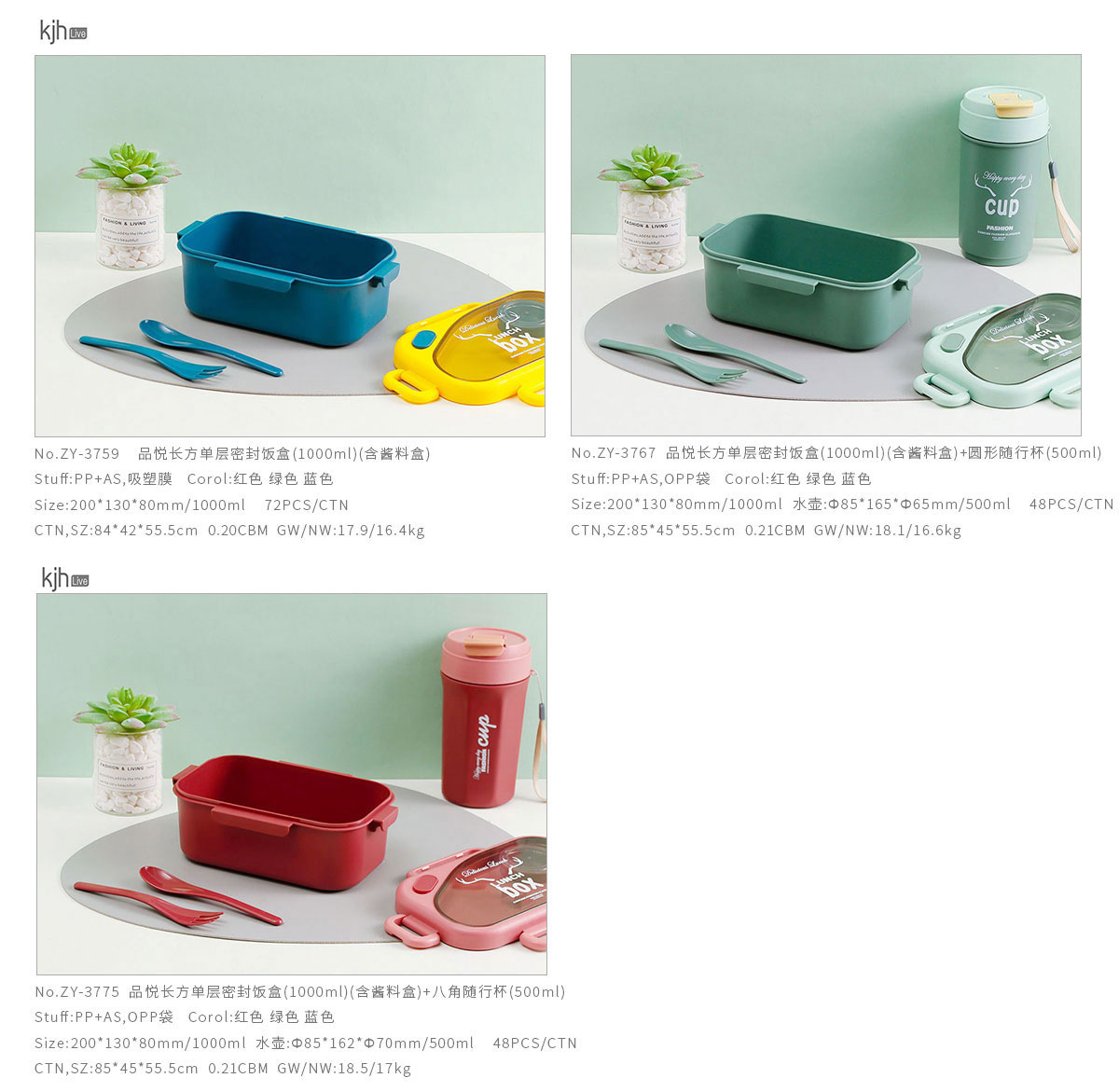 ZY-3767:200*130*80mm/1000ml 水壺:Ф85*165*Ф65mm/500ml