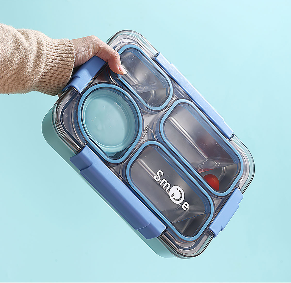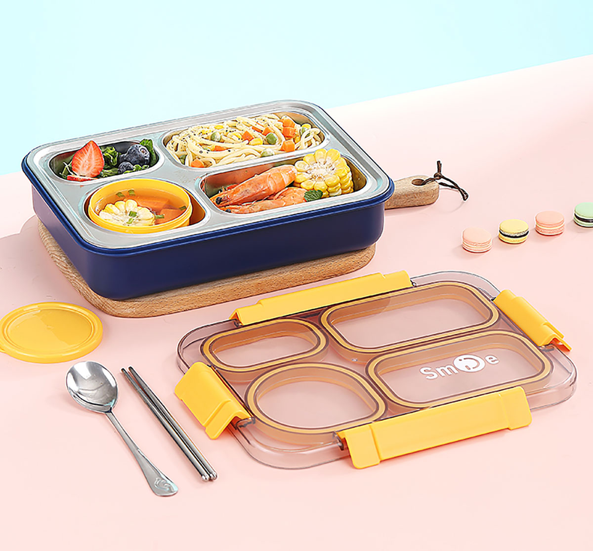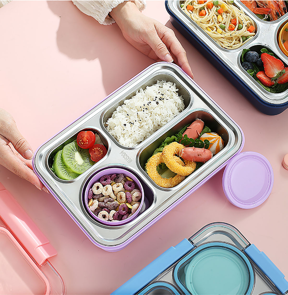 900ml獨立密封不銹鋼餐盒(4格+PP碗150ml+不銹鋼勺筷)