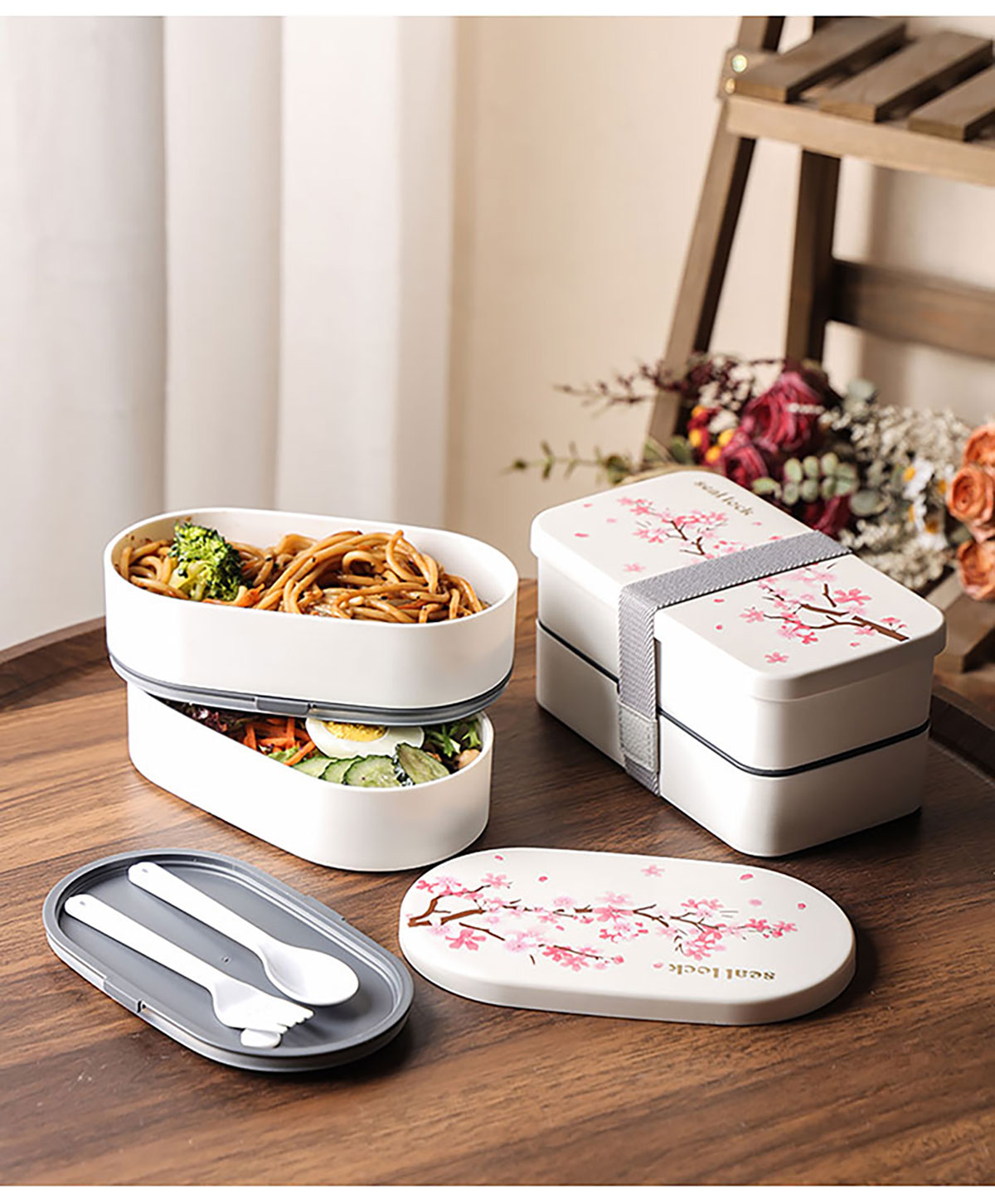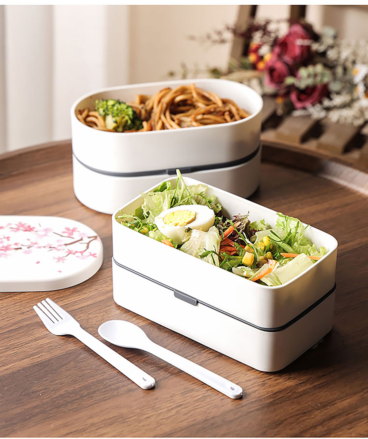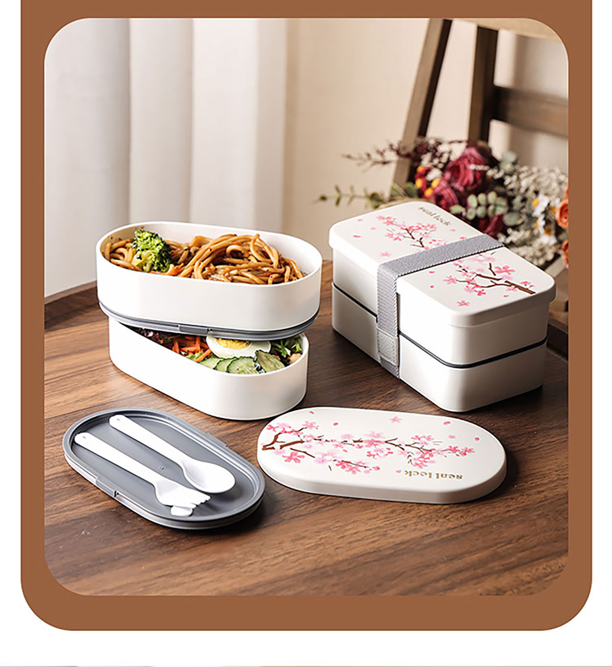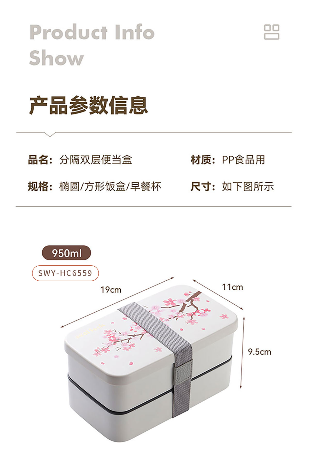 春日櫻花長(zhǎng)方形/橢圓形便當(dāng)盒