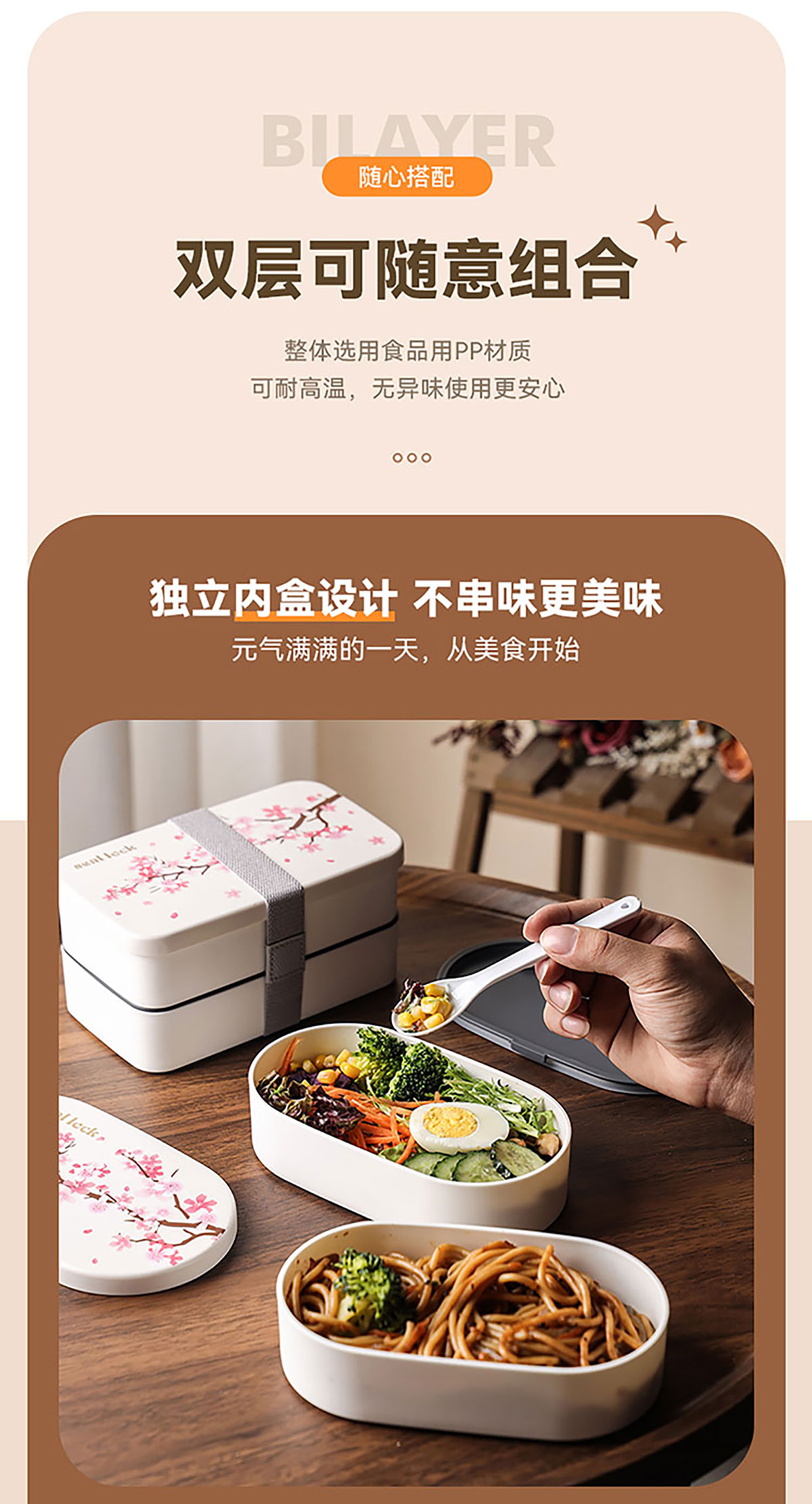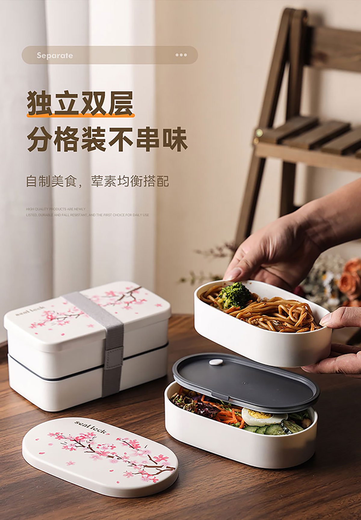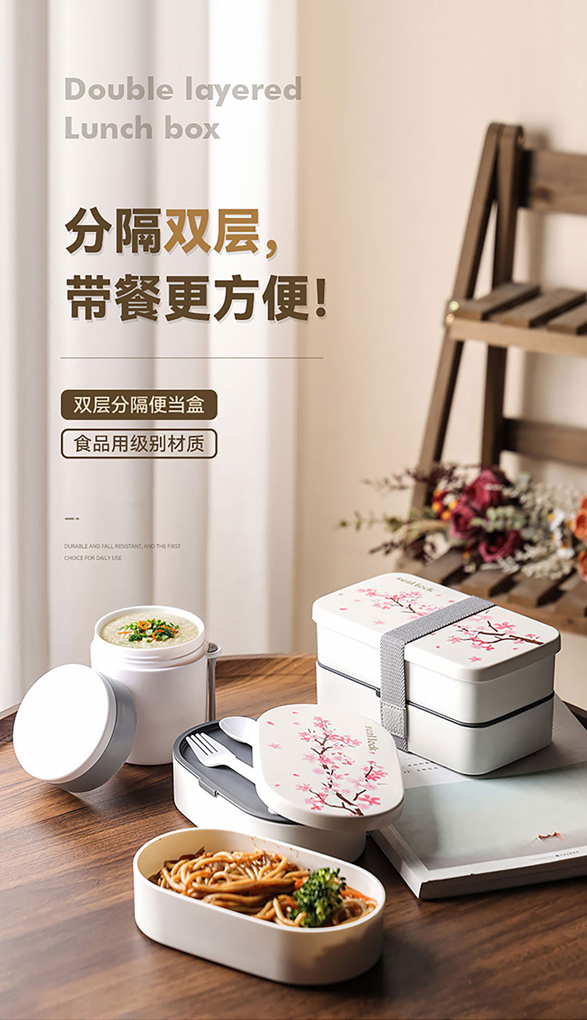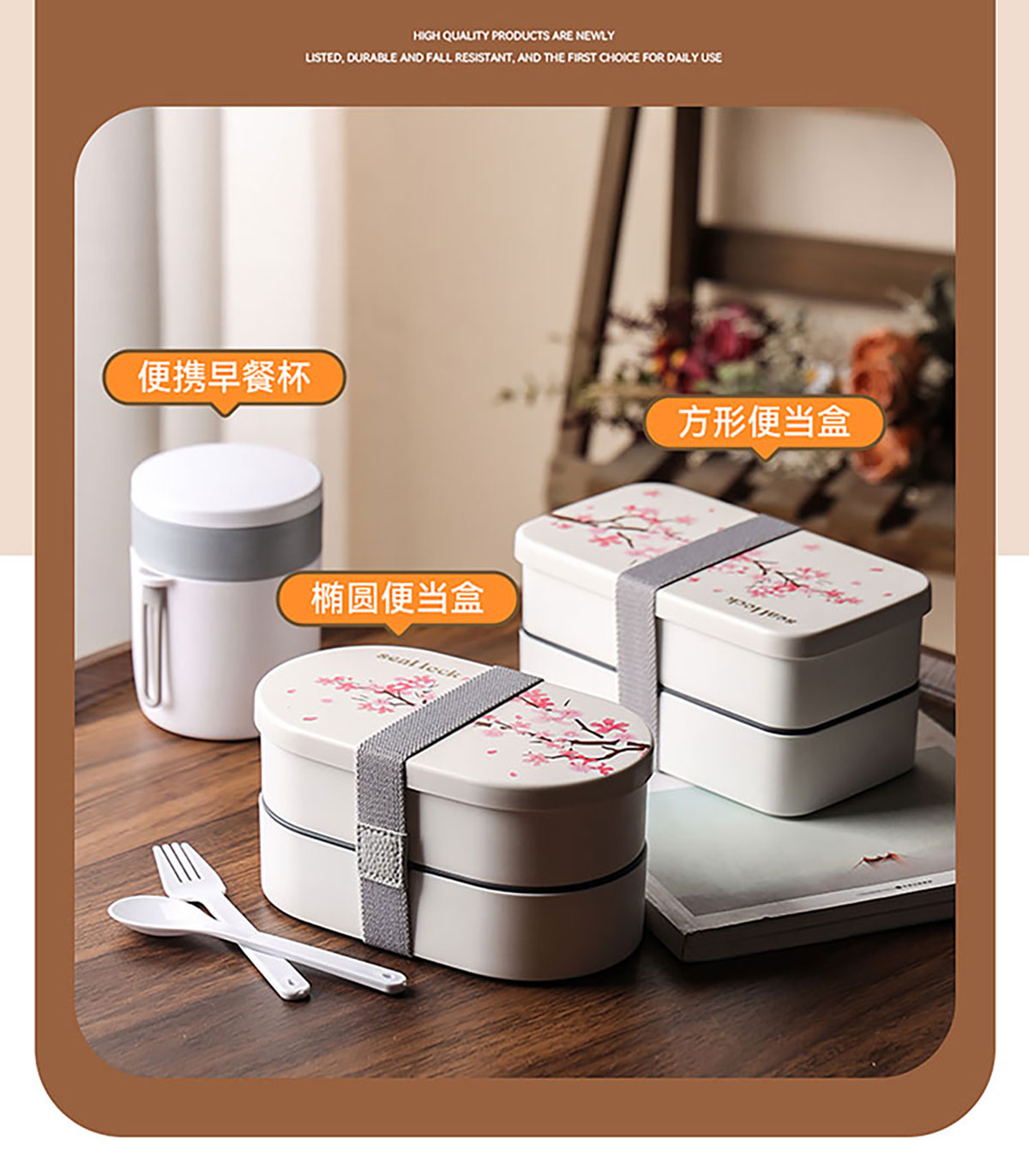 春日櫻花長(zhǎng)方形/橢圓形便當(dāng)盒