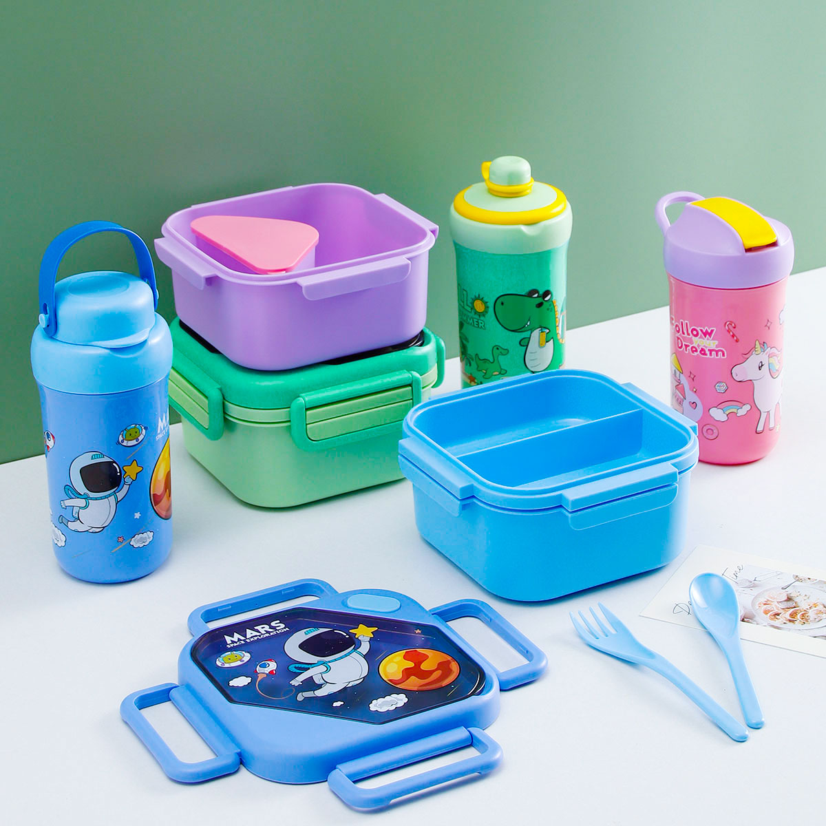 趣悅卡通正方單層(含格子)雙層飯盒+翻蓋吸嘴/旋蓋運(yùn)動(dòng)/翻蓋運(yùn)動(dòng)水壺