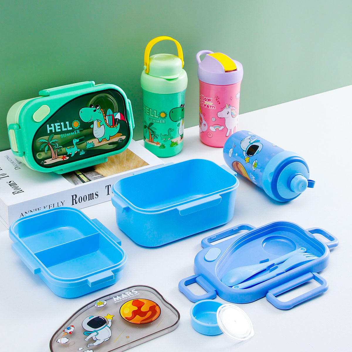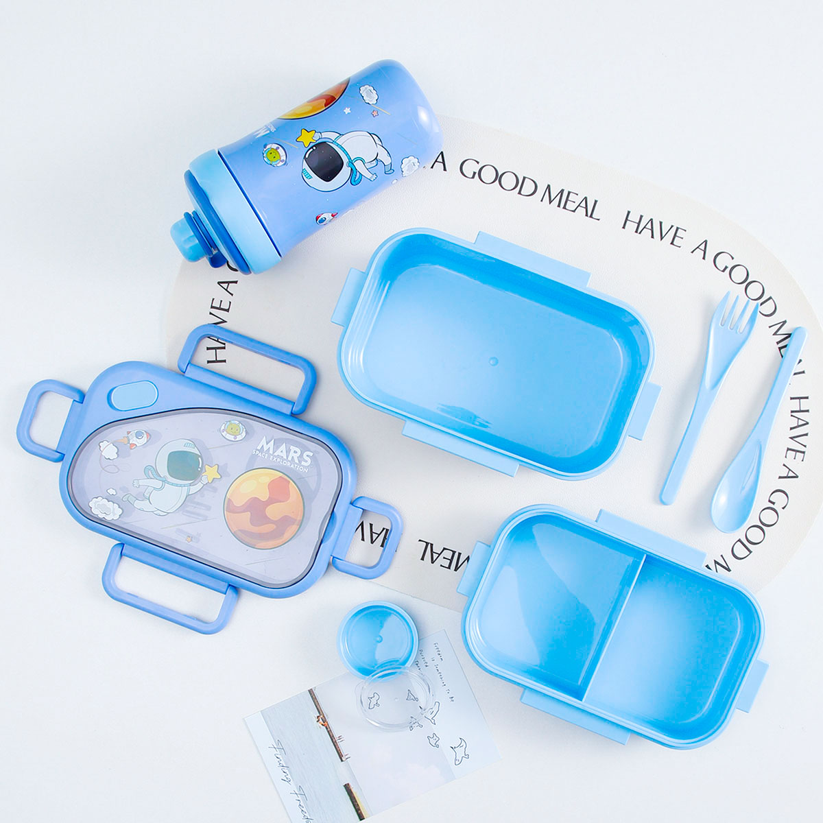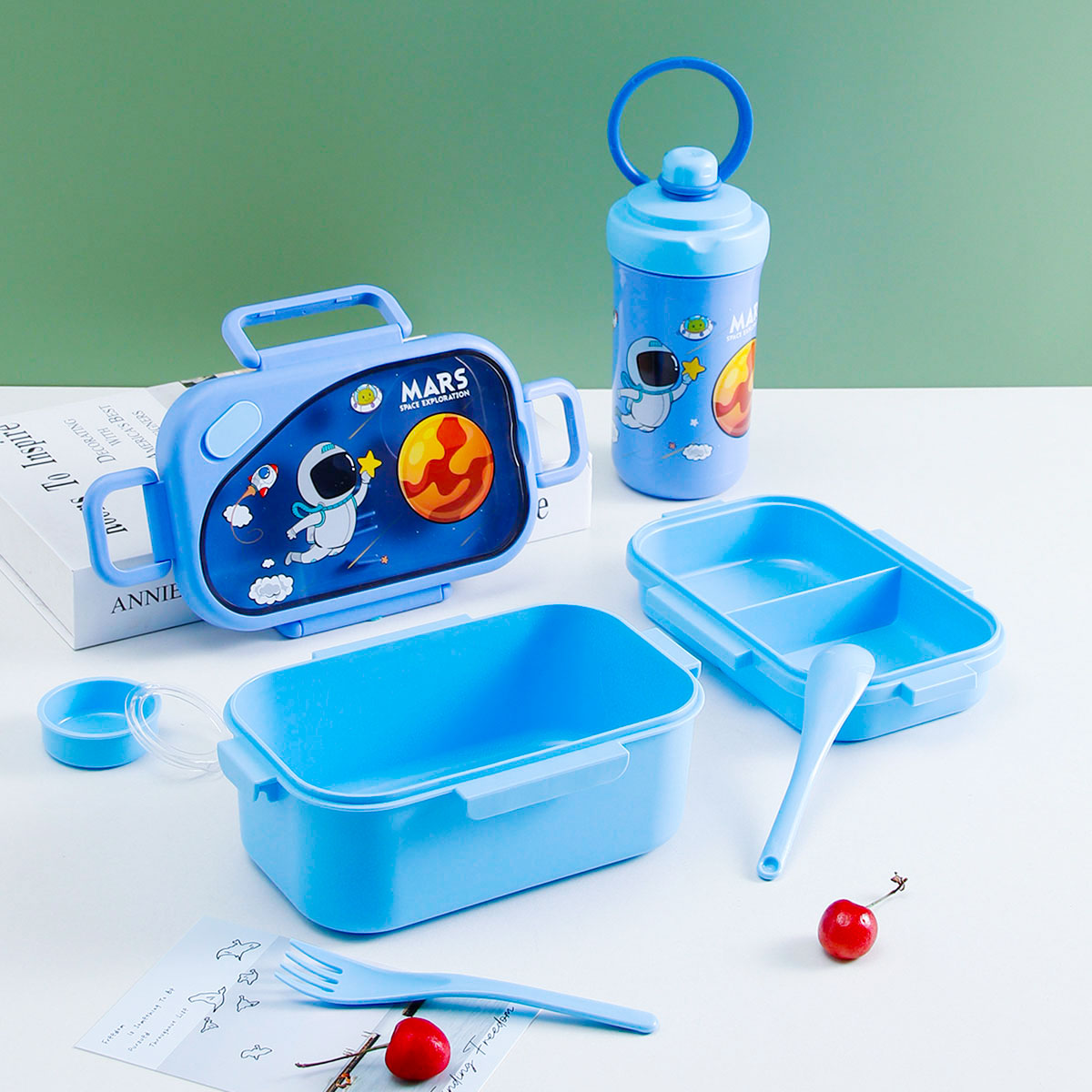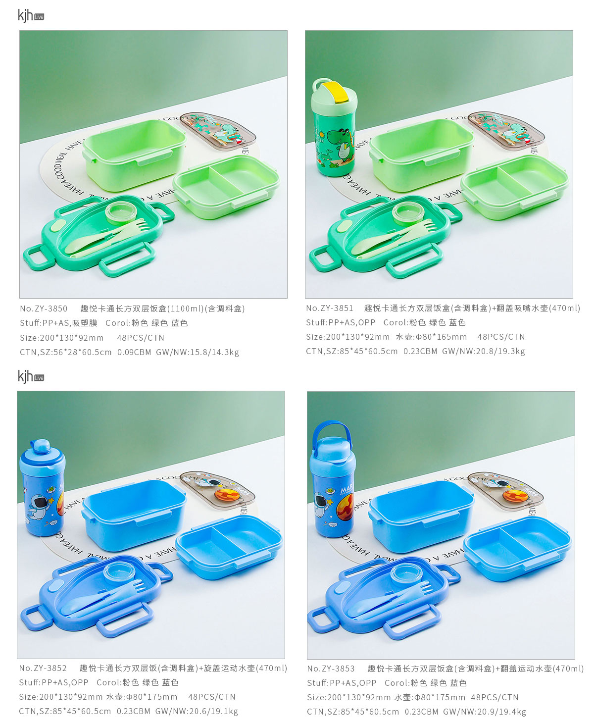 趣悅卡通長方雙層飯盒(含調(diào)料盒)+翻蓋吸嘴/旋蓋運(yùn)動(dòng)/翻蓋運(yùn)動(dòng)水壺