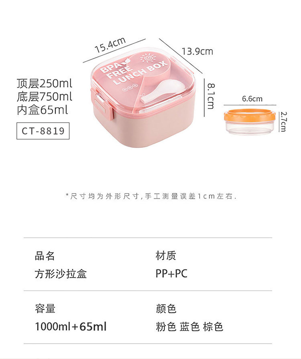 CT-8819(帶沙拉盒):154*139*81mm/1000ml+65ml