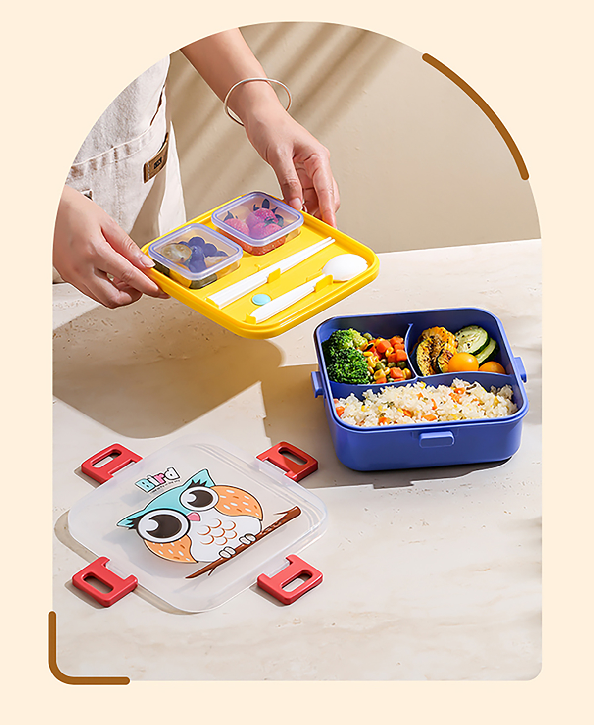 正方形飯盒(帶醬料盒)