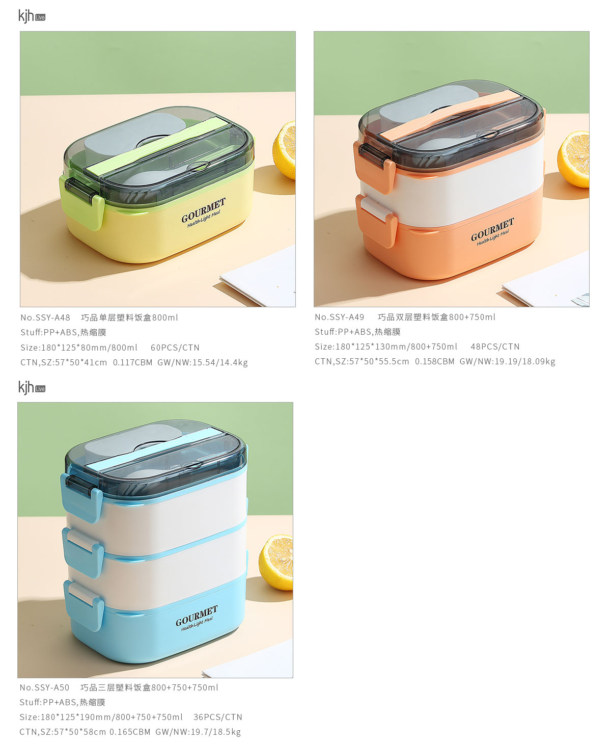 SSY-A50(三層塑料):180*125*190mm/800+750+750ml