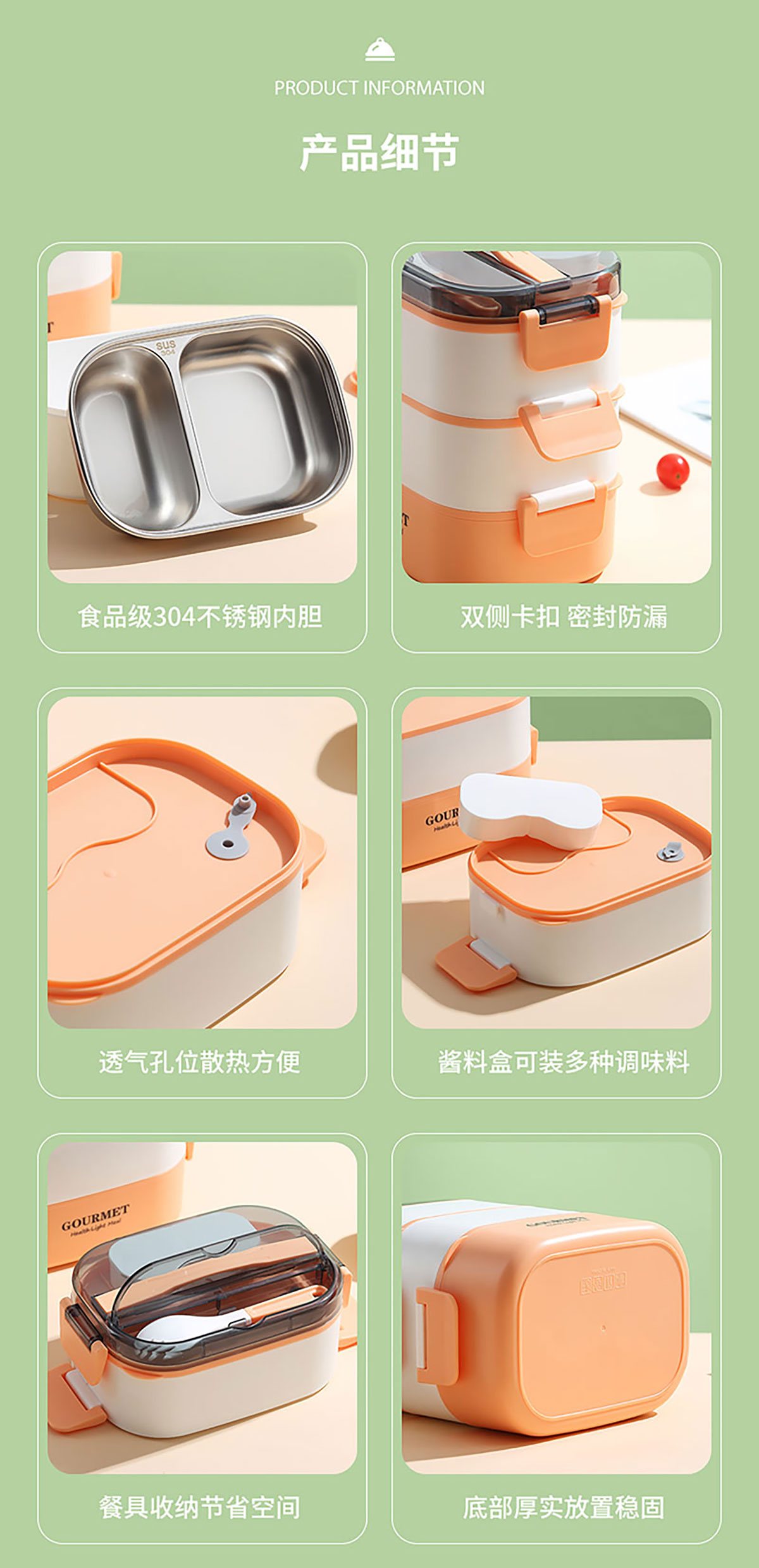 SSY-A52B(雙層不銹鋼):180*125*130mm/550+450ml