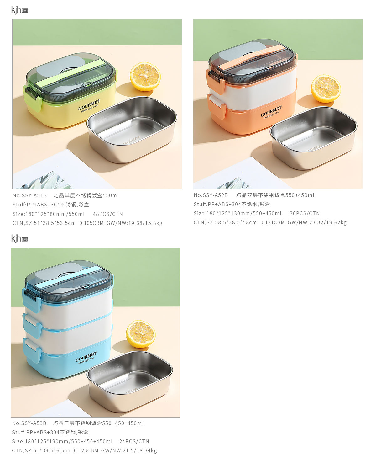 SSY-A53B(三層不銹鋼):180*125*190mm/550+450+450ml