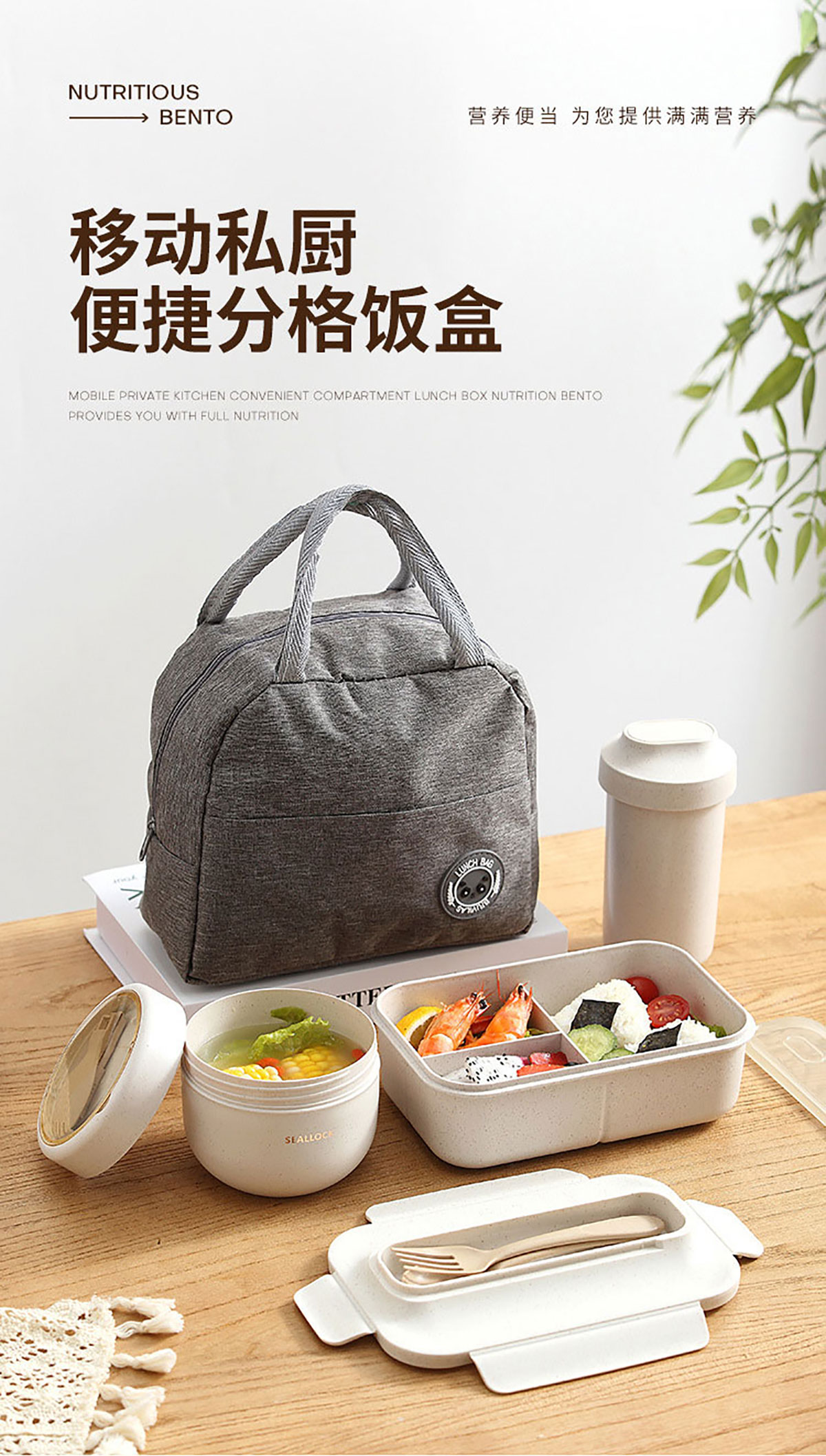 簡麥便當(dāng)盒飯盒/套裝(飯盒+水杯/飯盒+水杯+灰色餐袋/飯盒+燕麥杯+灰色餐袋)