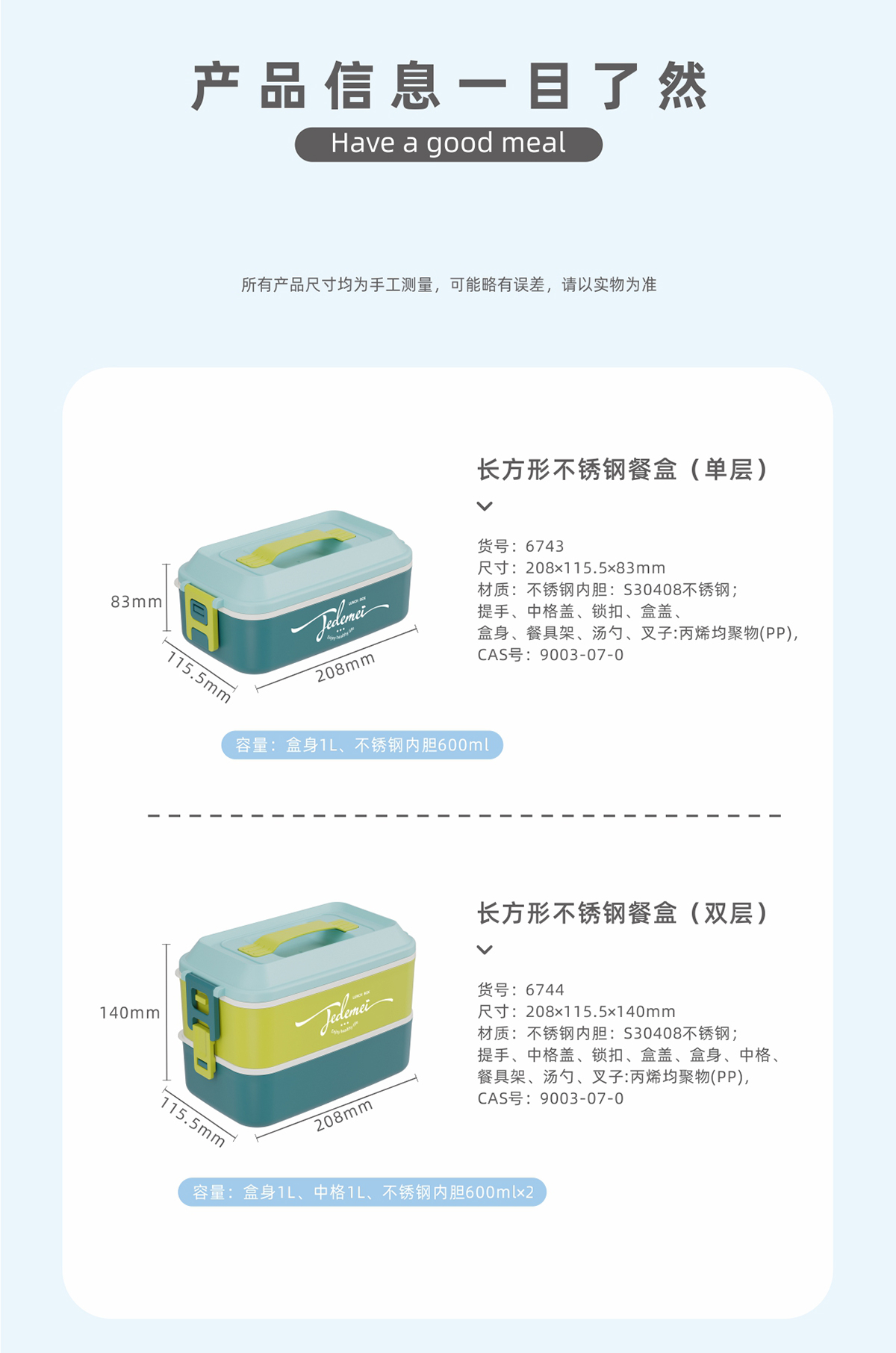 Size: HM-6743(單層):208*116*83mm HM-6744(雙層):208*116*140mm