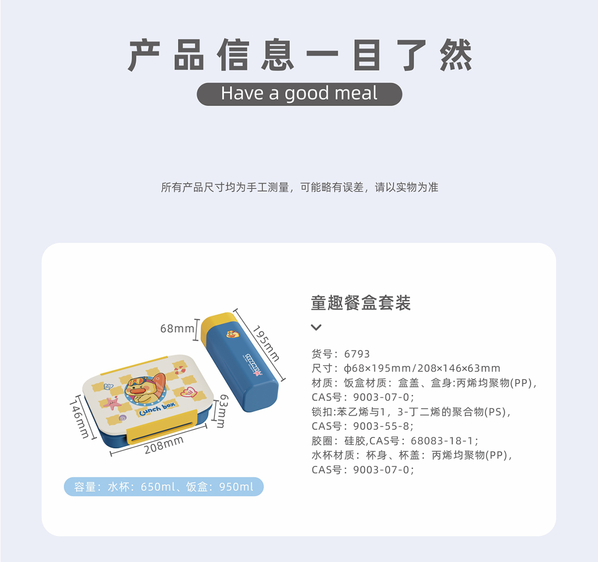 Size: 杯:?68*195mm/飯盒:208*146*63mm