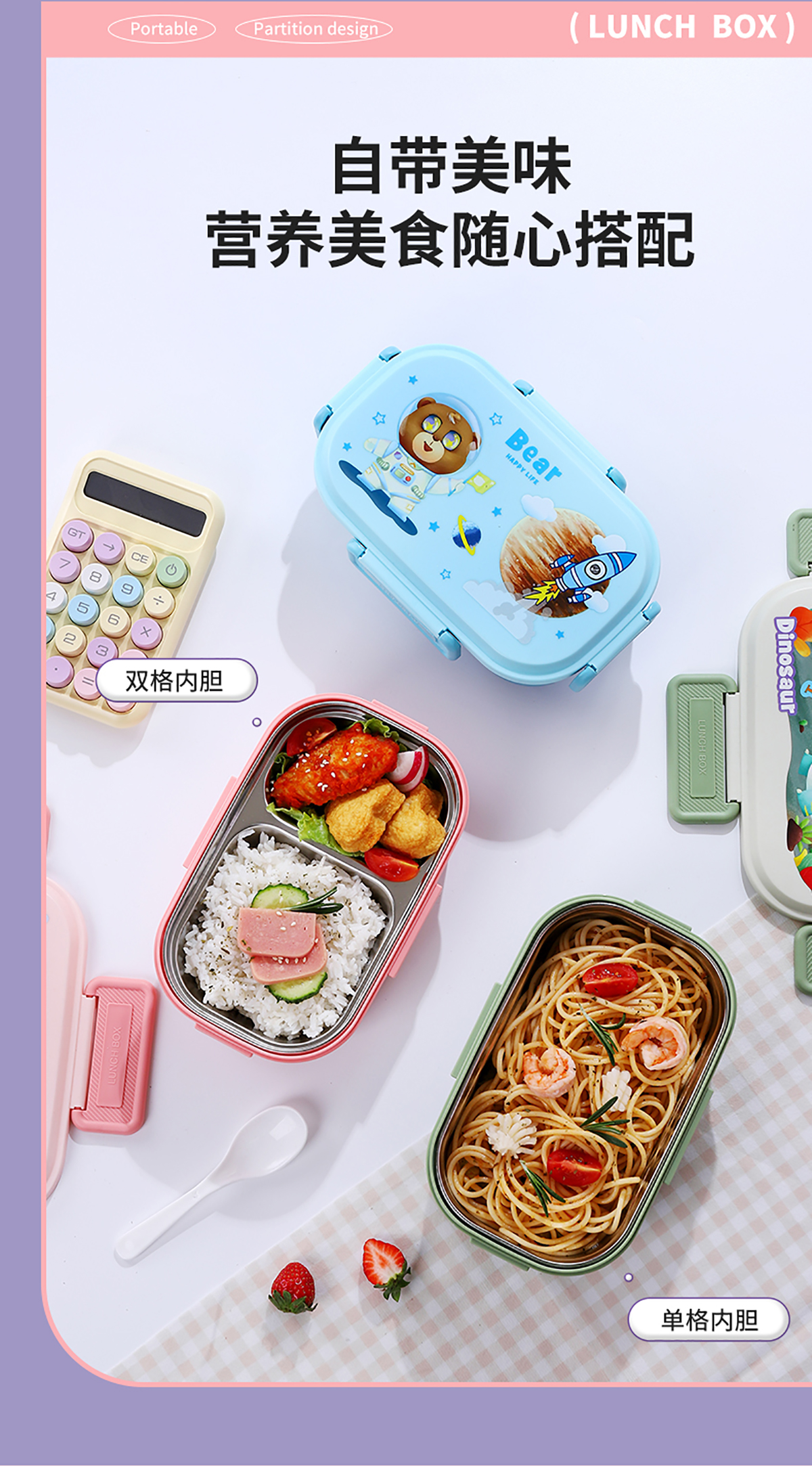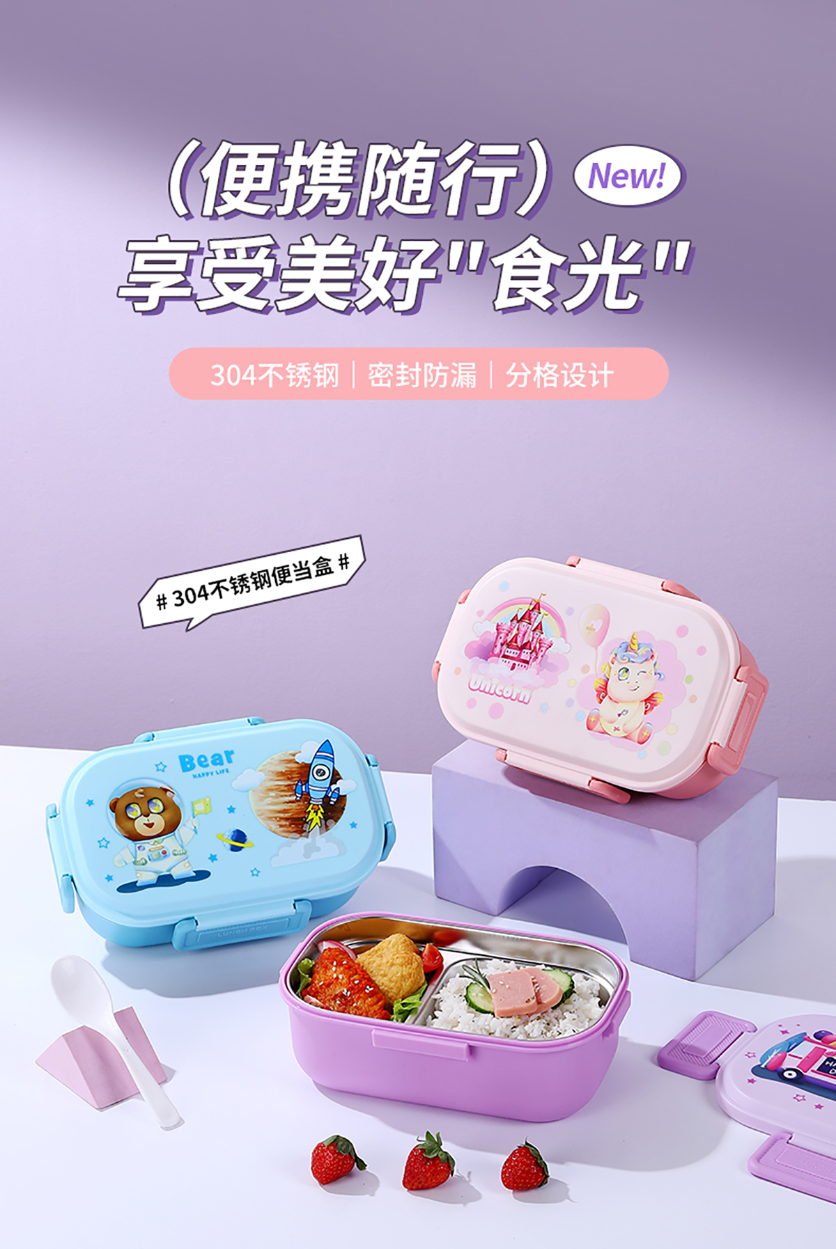 卡通飯盒(201/304單格/雙格內(nèi)膽)