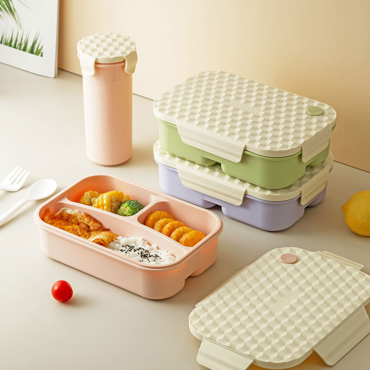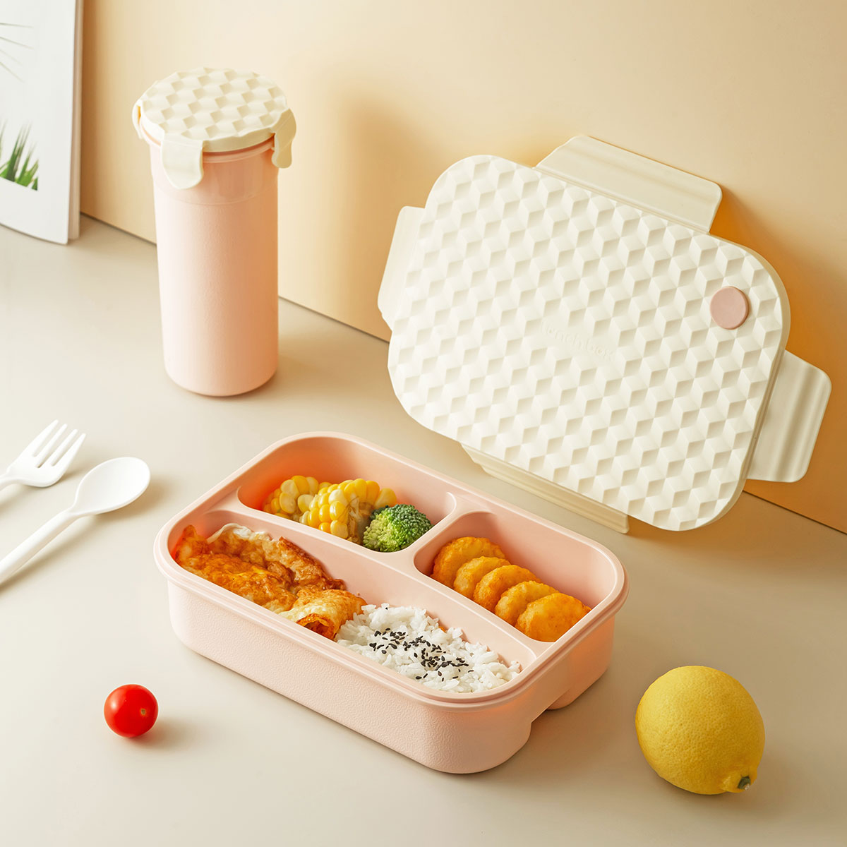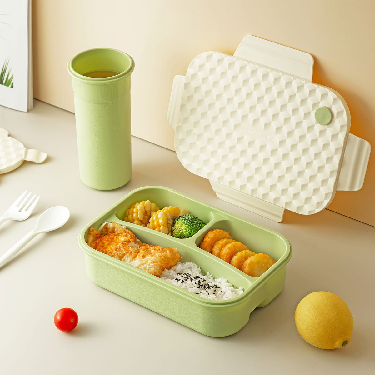 Size: 飯盒:230*160*66mm/1250ml 杯:84*65*175mm/500ml