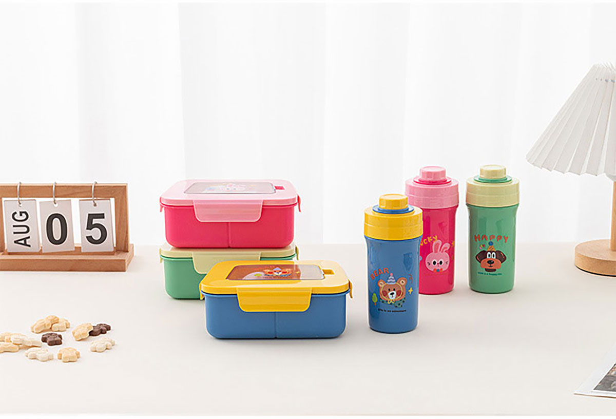 卡通三分格小飯盒/手提運(yùn)動(dòng)水壺/飯盒水壺套裝