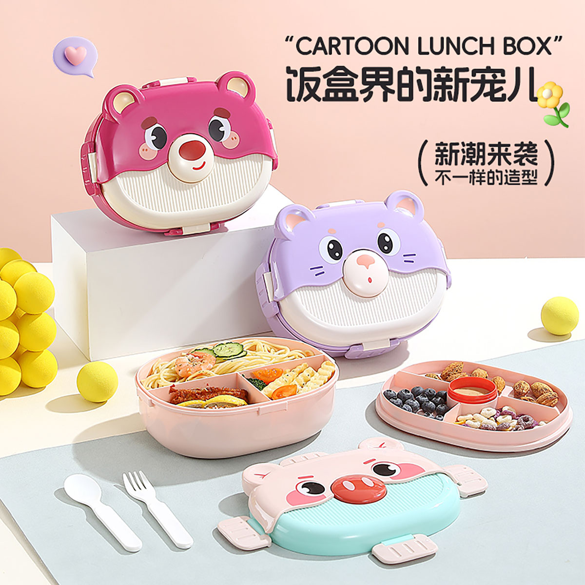 卡通新寵分格飯盒1350ml