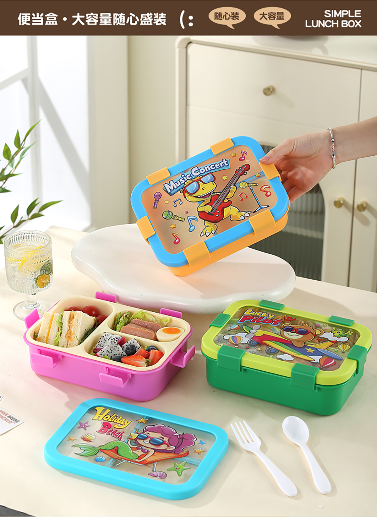 星樂(lè)便當(dāng)盒PP/卡通款 下單可選(三格700ml)/(三格碗型650ml)
