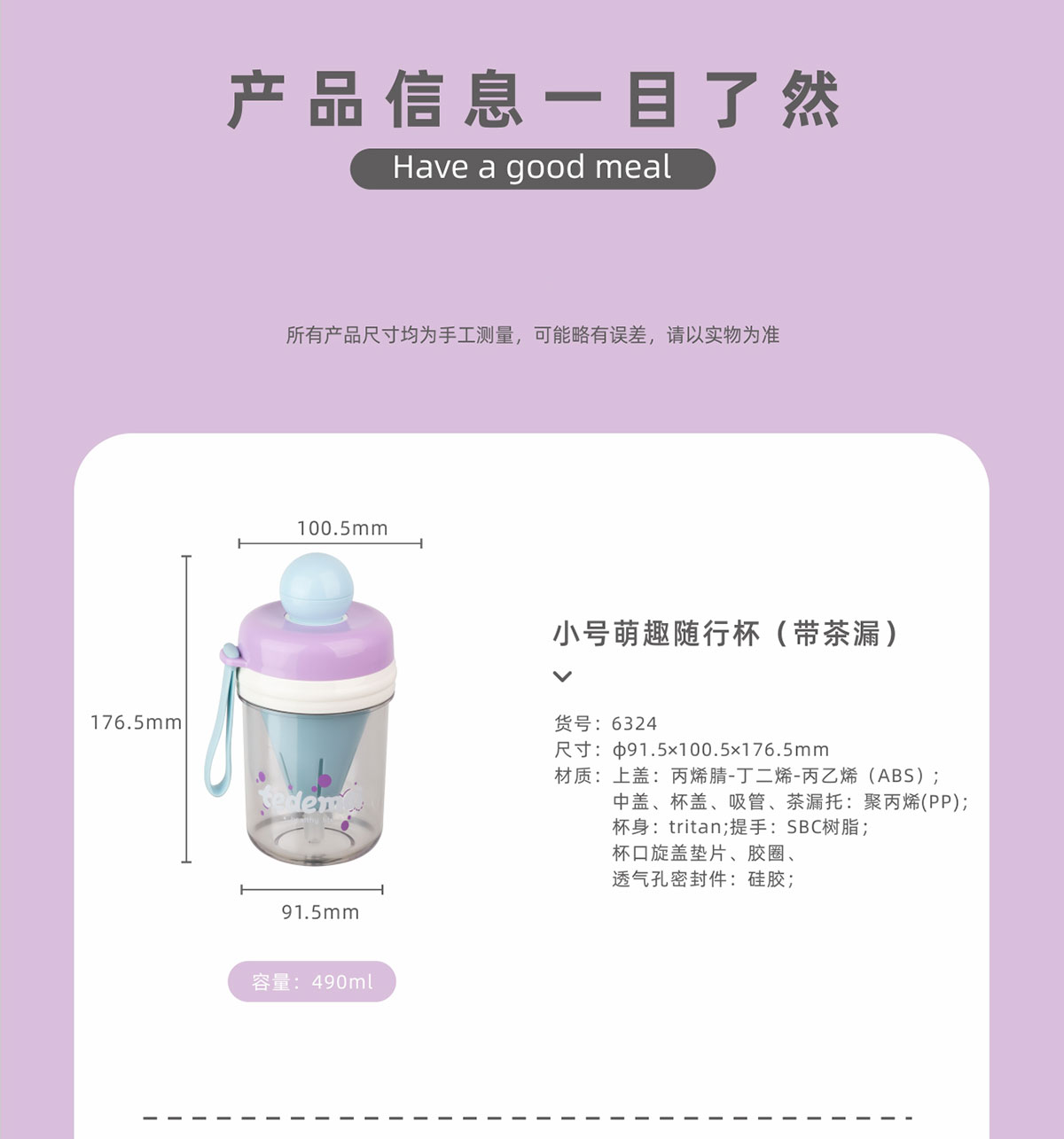 小號(hào)/大號(hào)萌趣隨行杯(帶茶漏)
